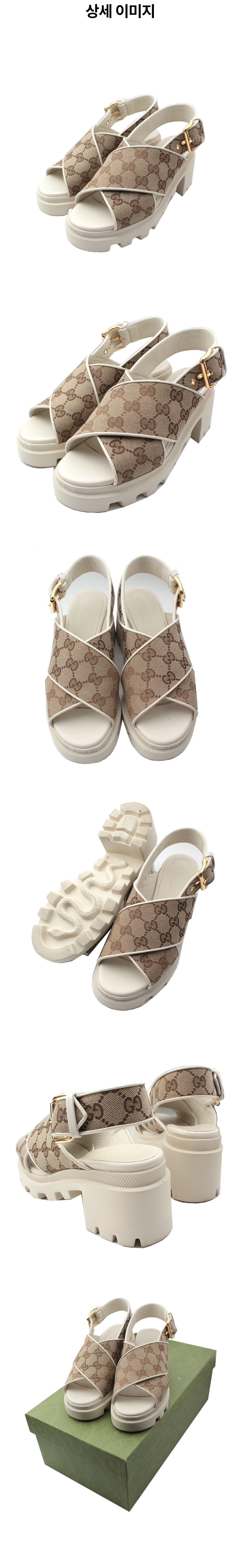 구찌 자카드 스트랩 청키 힐 샌들 35호