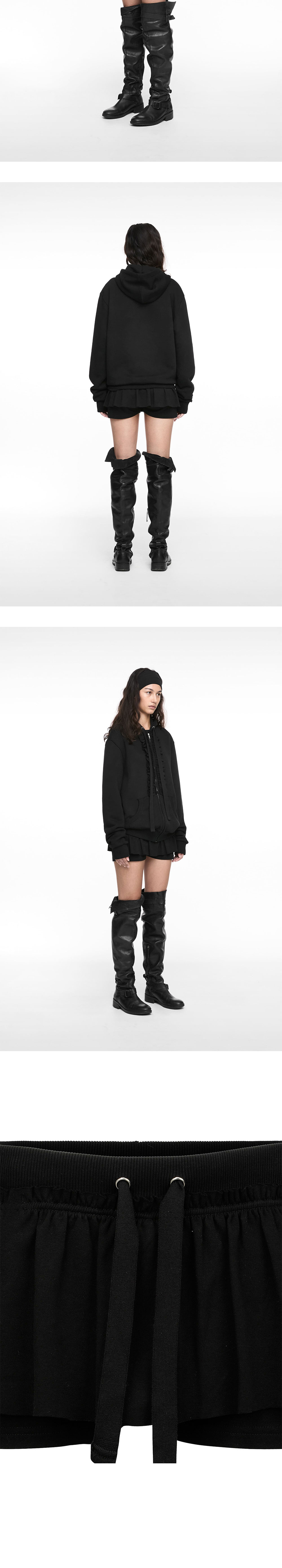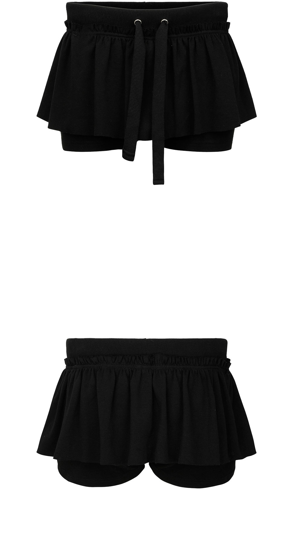 나체 우먼 러플 쇼트 팬츠 블랙입니다. - 셔링 디테일이 돋보이는 스커트형 팬츠 - 마이크로 미니 기장으로 컨템포러리한 무드 연출 - 부드럽고 유연한 소재 - 허리 니트 스트랩