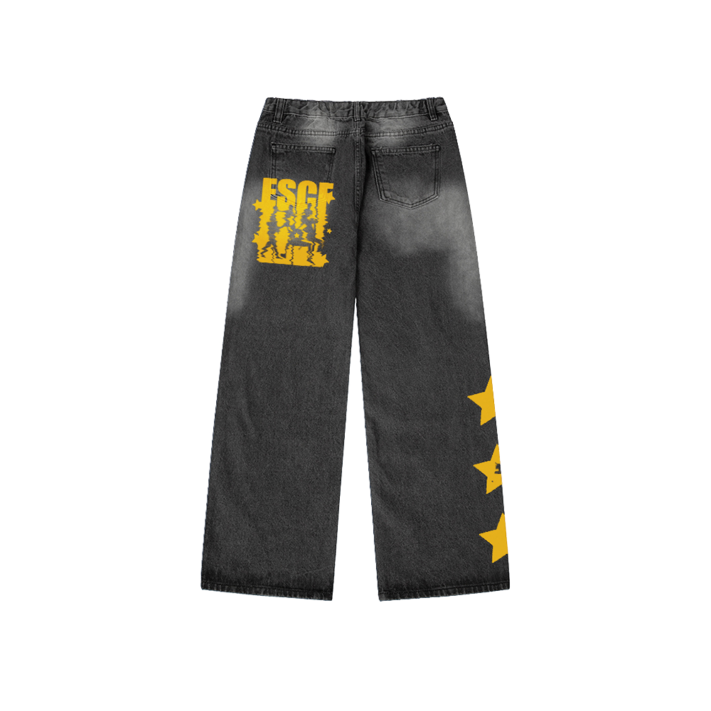 이스케이프프롬 ESCF 피플 프린트 밴딩 워싱 데님 팬츠 흑청
