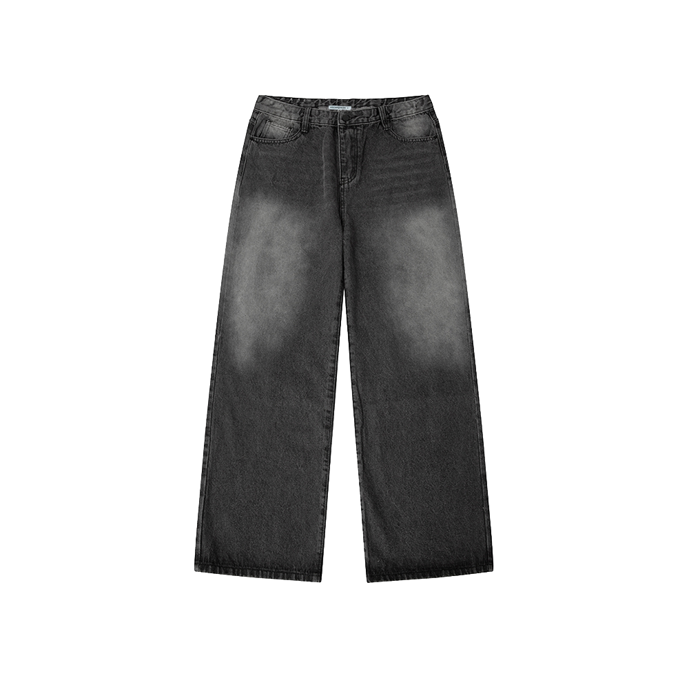 이스케이프프롬 드로잉 포인트 프린트 밴딩 워싱 데님 팬츠 흑청