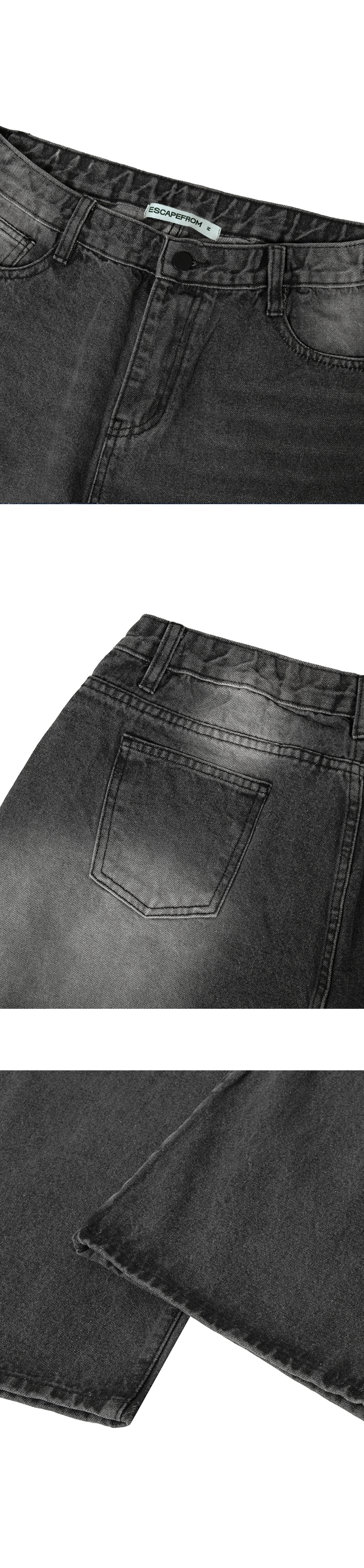 Escapefrom Drawing Point Print Banded Washed Denim Pants Charcoal