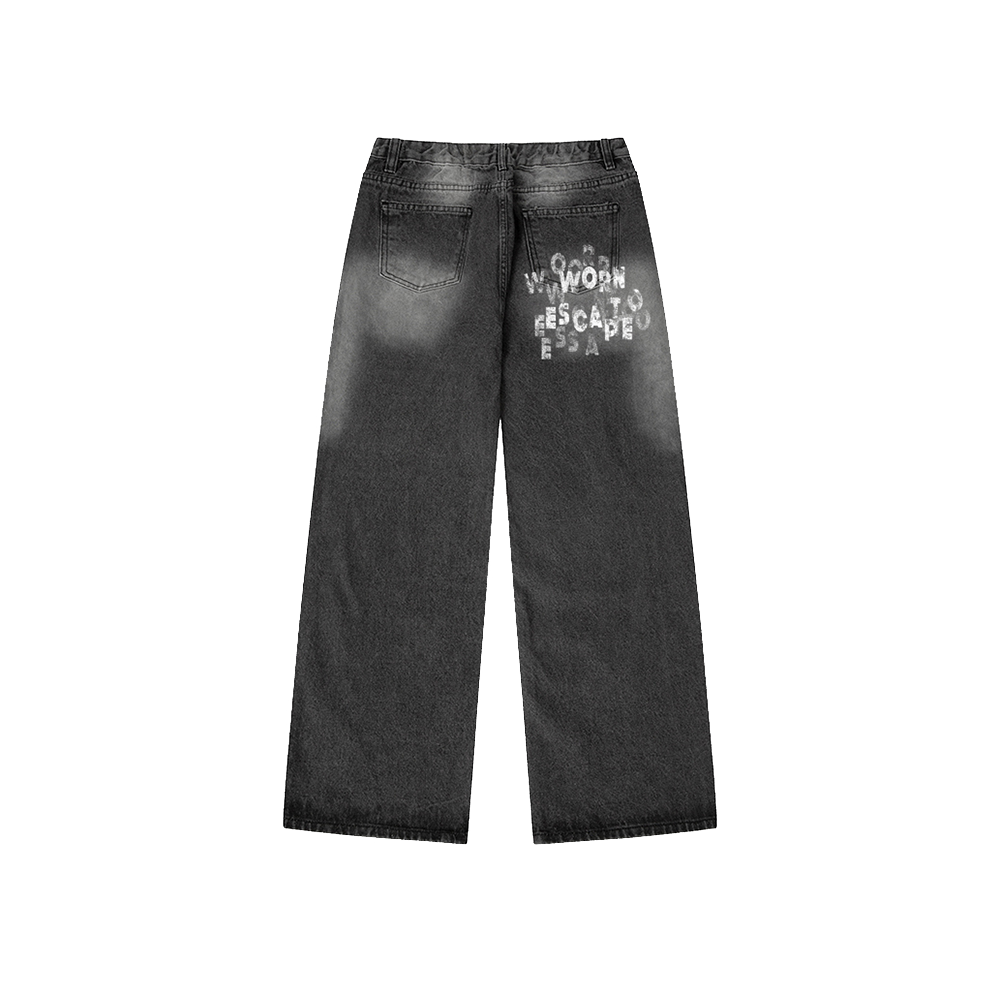 Escapefrom Worn to Escape Print Banded Washed Denim Pants Charcoal