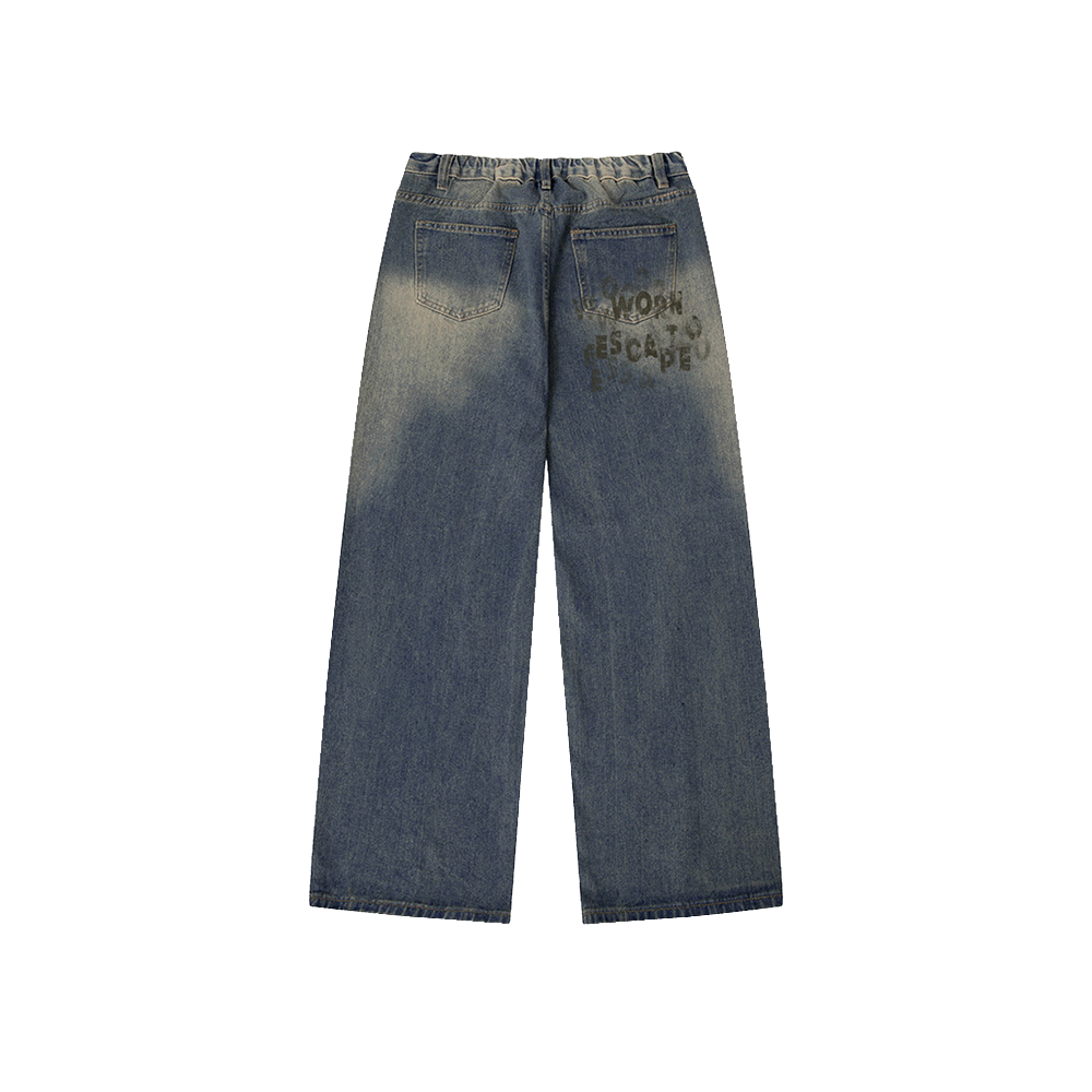 Escapefrom Worn to Escape Print Banded Washed Denim Pants Vintage
