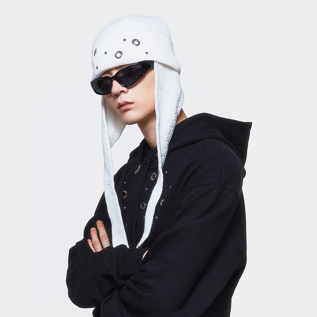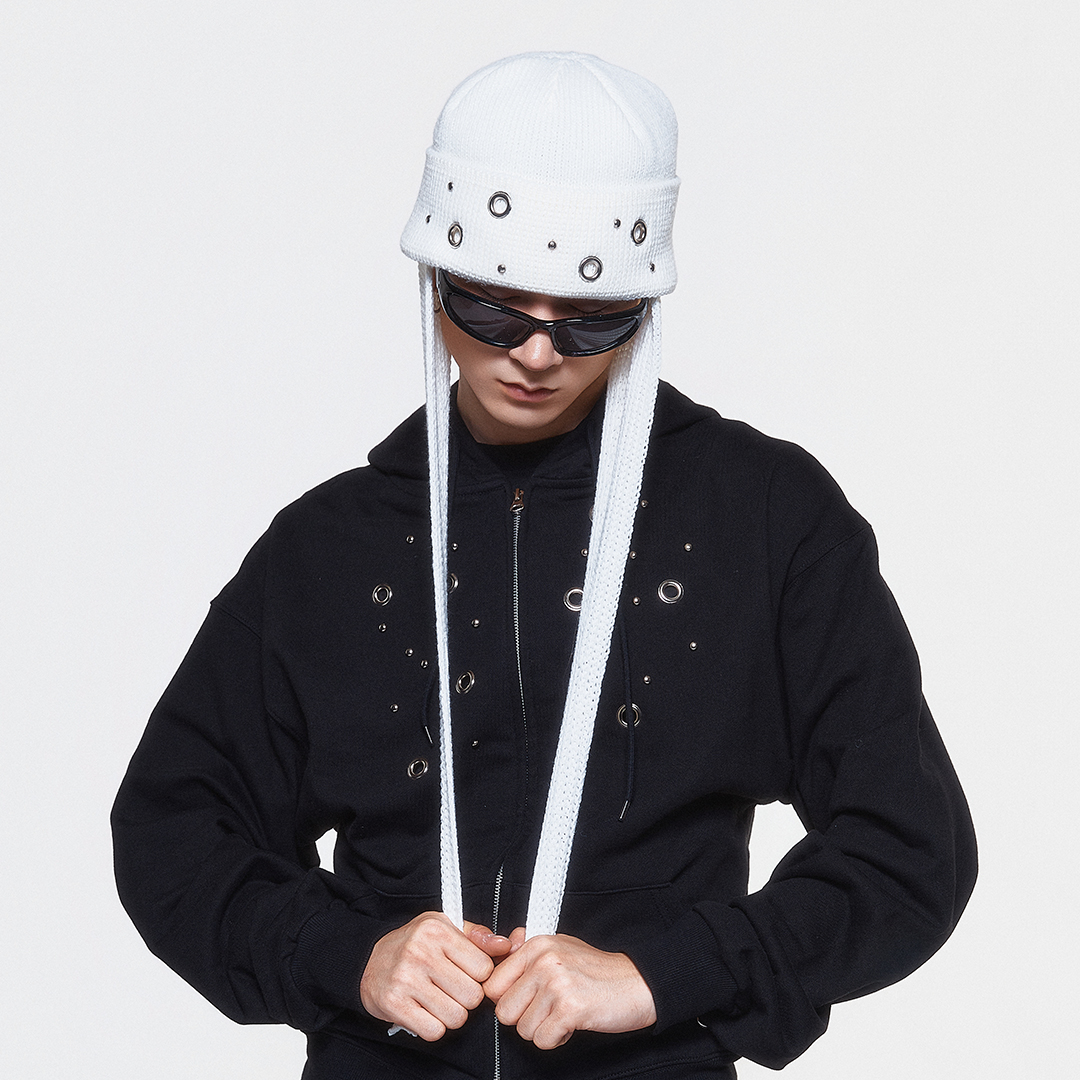 Product Description. ㆍ전면 랜덤한 배치의 아일렛과 스터드 디테일 ㆍ후면 심볼 앰블럼 ㆍ귀까지 덮어주는 이어플랩 ㆍUnique mood with randomly placed eyelet and stud details on the front ㆍBack DUC symbol emblem point ㆍEarflap design that comfortably covers the ears Product Size & Info. Size : One Size Color : Black, Gray, White Material : Acrylic 100% One Size : Earflap length: 42cm / Width: 27cm / Depth: 19cm Washing Tip. Dry cleaning + Only hand washing 드라이 클리닝 또는 손세탁을 권장하며 케어 라벨을 참고해 주세요. MADE IN KOREA.