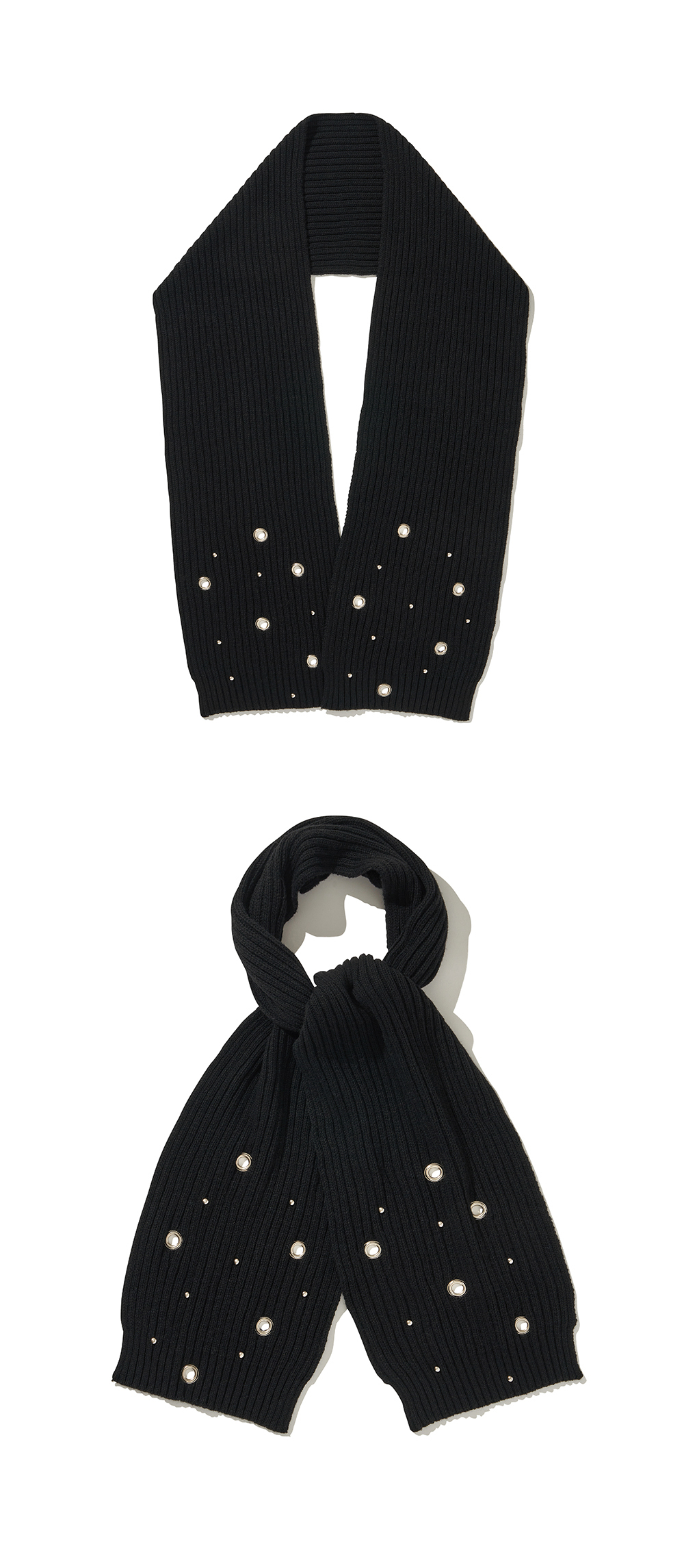 Product Description. ㆍ전면 랜덤한 배치의 아일렛과 스터드 디테일 ㆍ높은 울 혼방율로 탁월한 보온성 ㆍ다양한 연출이 가능한 사이즈 ㆍUnique mood with randomly placed eyelet and stud details on the front ㆍExcellent warmth with a high wool blend ratio ㆍVersatile size for various styling optio Product Size & Info. Size : One Size Color : Black, Gray, White Material : 50% Wool, 50% Acrylic One Size : Length: 182cm / Width: 22cm Washing Tip. Dry cleaning + Only hand washing 드라이 클리닝 또는 손세탁을 권장하며 케어 라벨을 참고해 주세요. MADE IN KOREA.