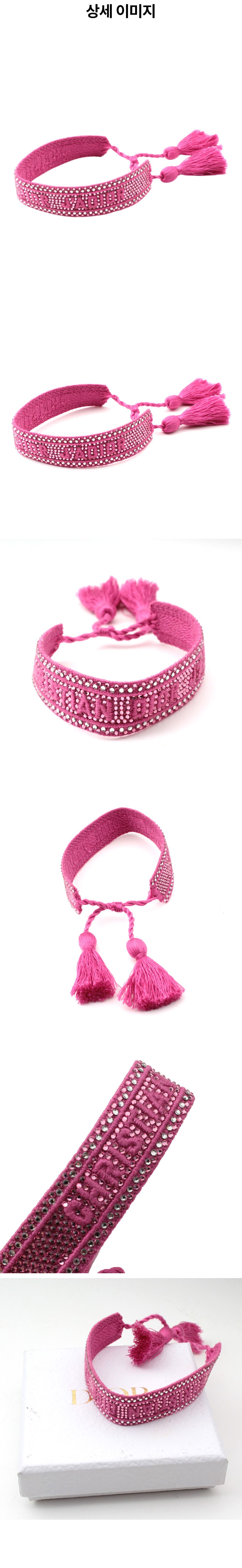 디올 마젠타 핑크 자디올 비즈 테슬 팔찌