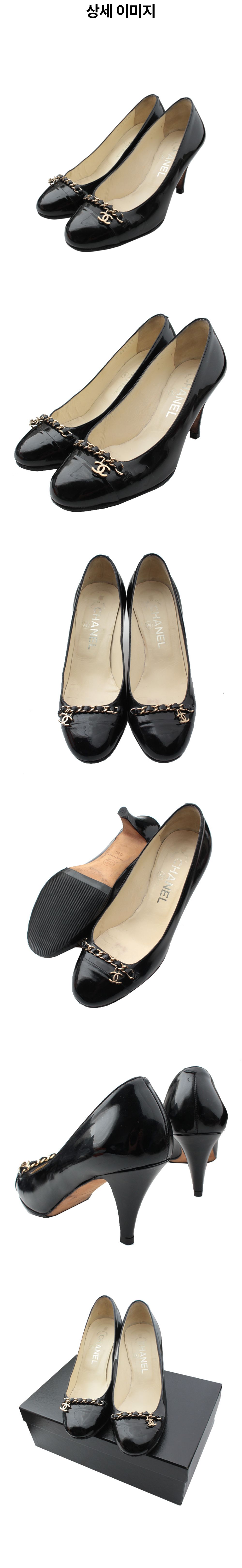 샤넬 블랙 페이턴트 금장 체인 펌프스 36C