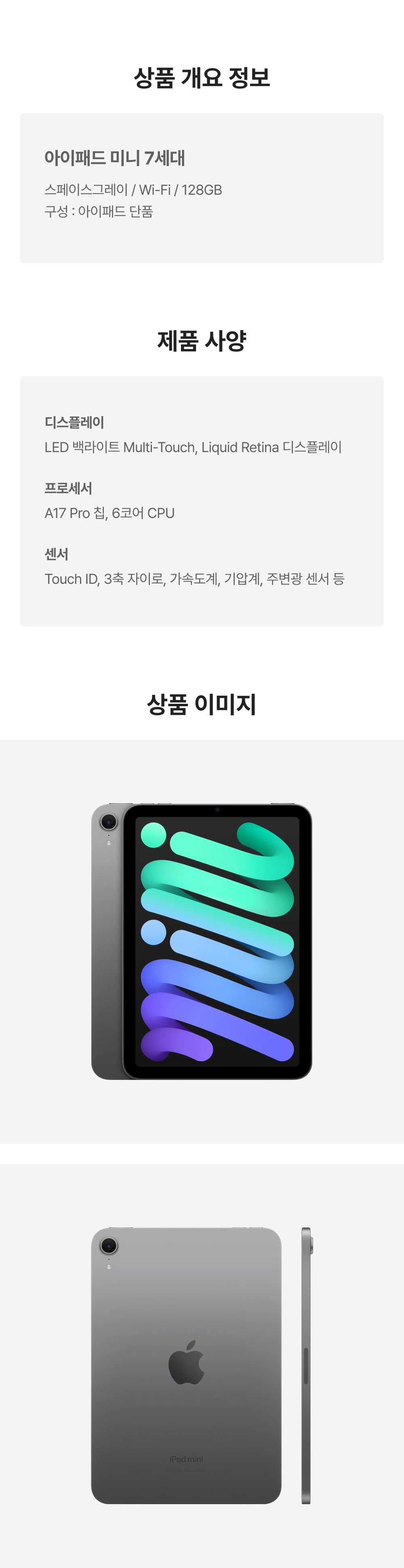 [S등급] 리퍼비시 아이패드 미니 7세대 wifi A17 Pro 128기가 스페이스그레이