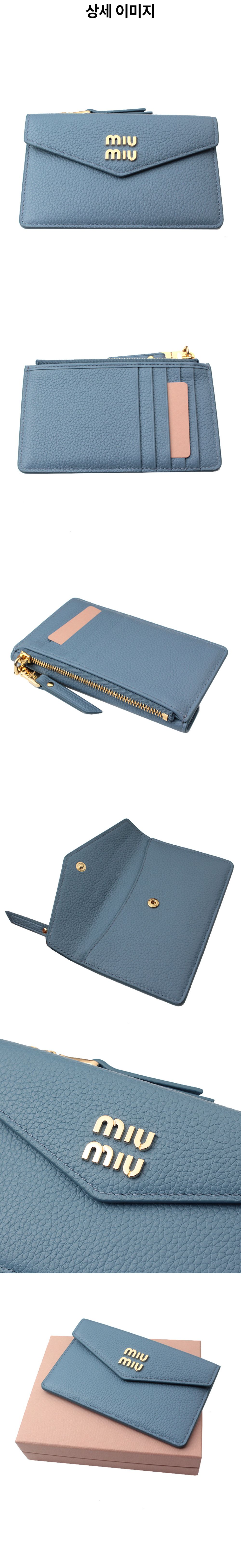 미우미우 라이트 블루 금장 카드 홀더 지갑