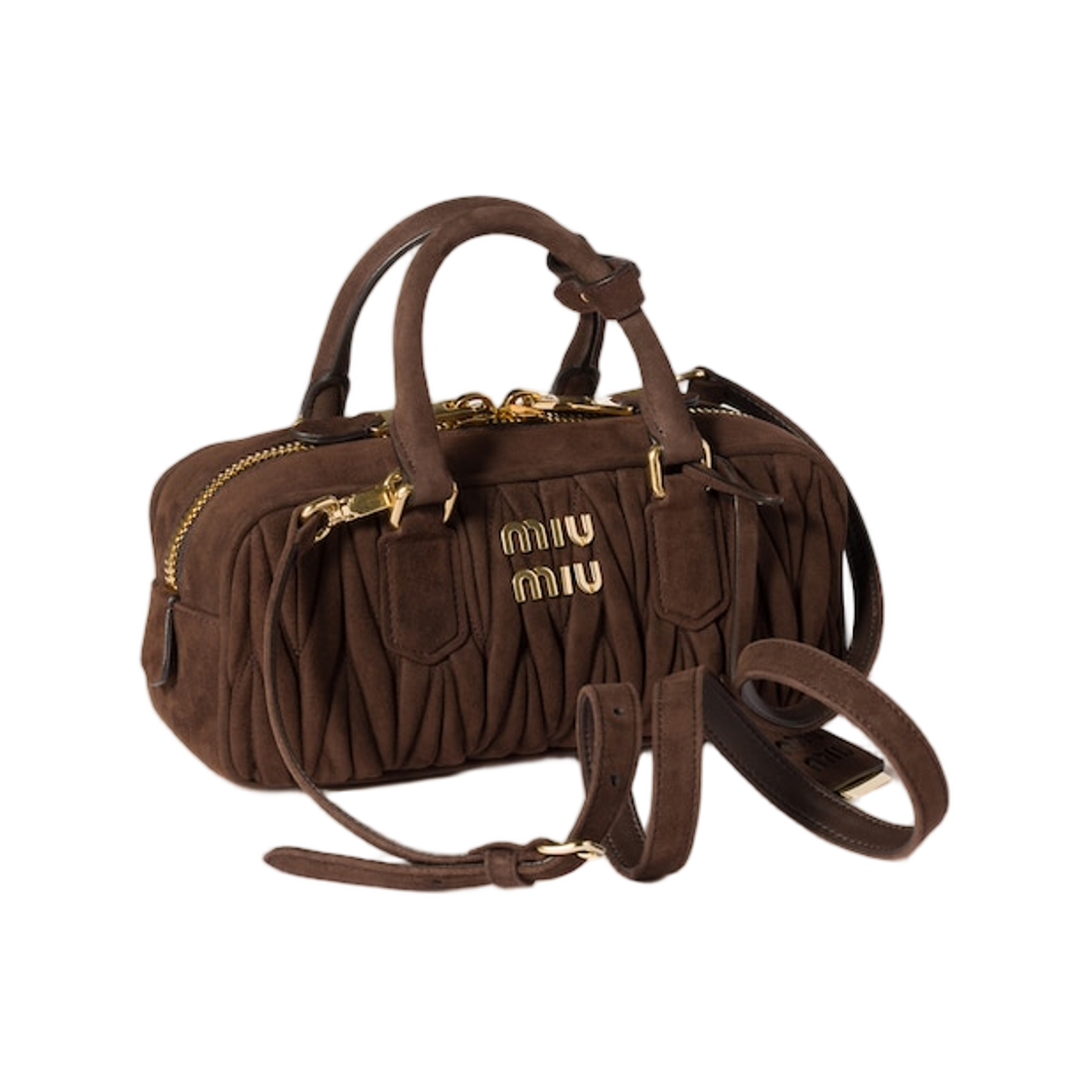 Miu Miu Arcadie Matelasse Suede Bag Dark Brown