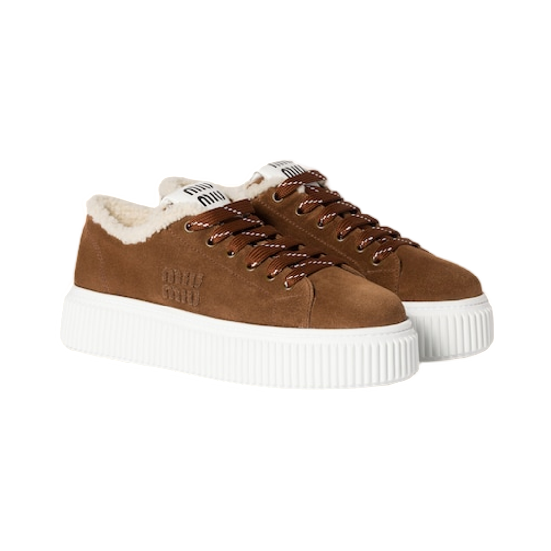 (W) Miu Miu Suede and Shearling Sneakers Cocoa Brown