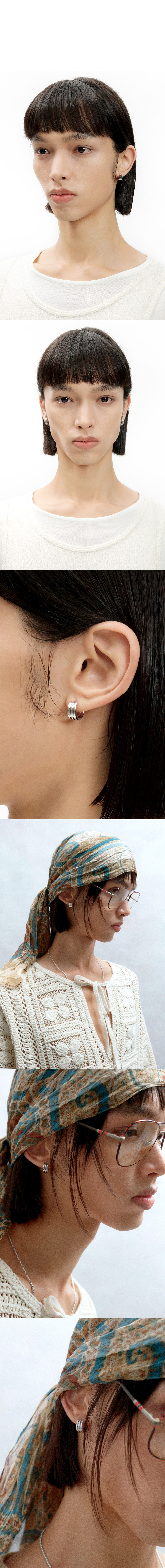 세개의 후프를 일정하게 배열한 베이직한 실루엣의 이어링.