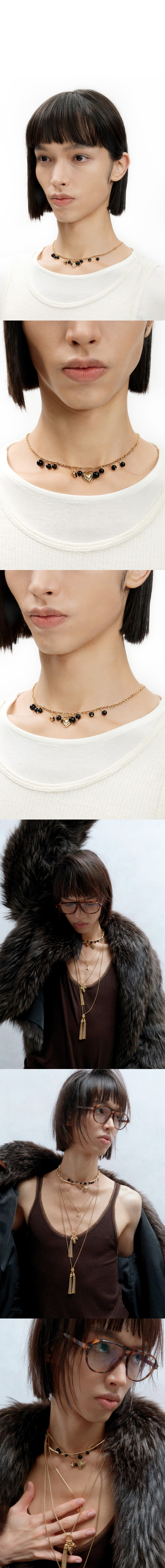 자유롭게 배치된 오닉스와 펜던트로 에스닉한 무드를 더한 아이템.