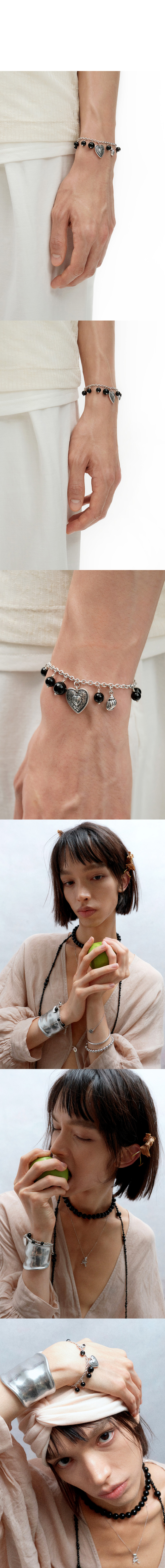 티링제이 쉘 앤 오닉스 브레이슬릿 실버