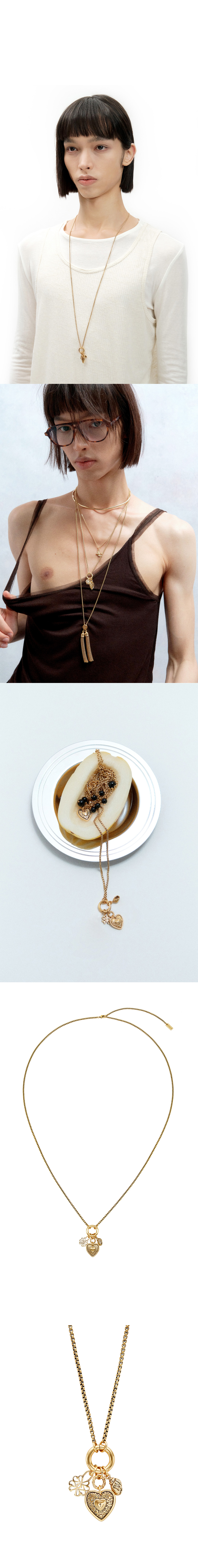티링제이 멀티 참스 롱 네크리스 골드