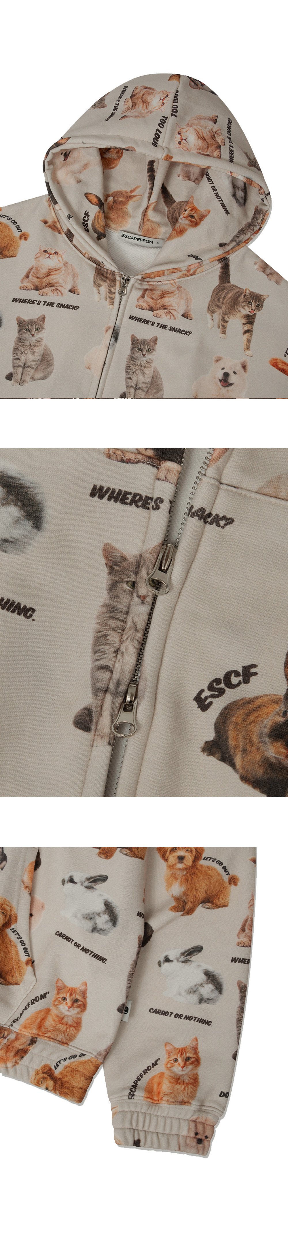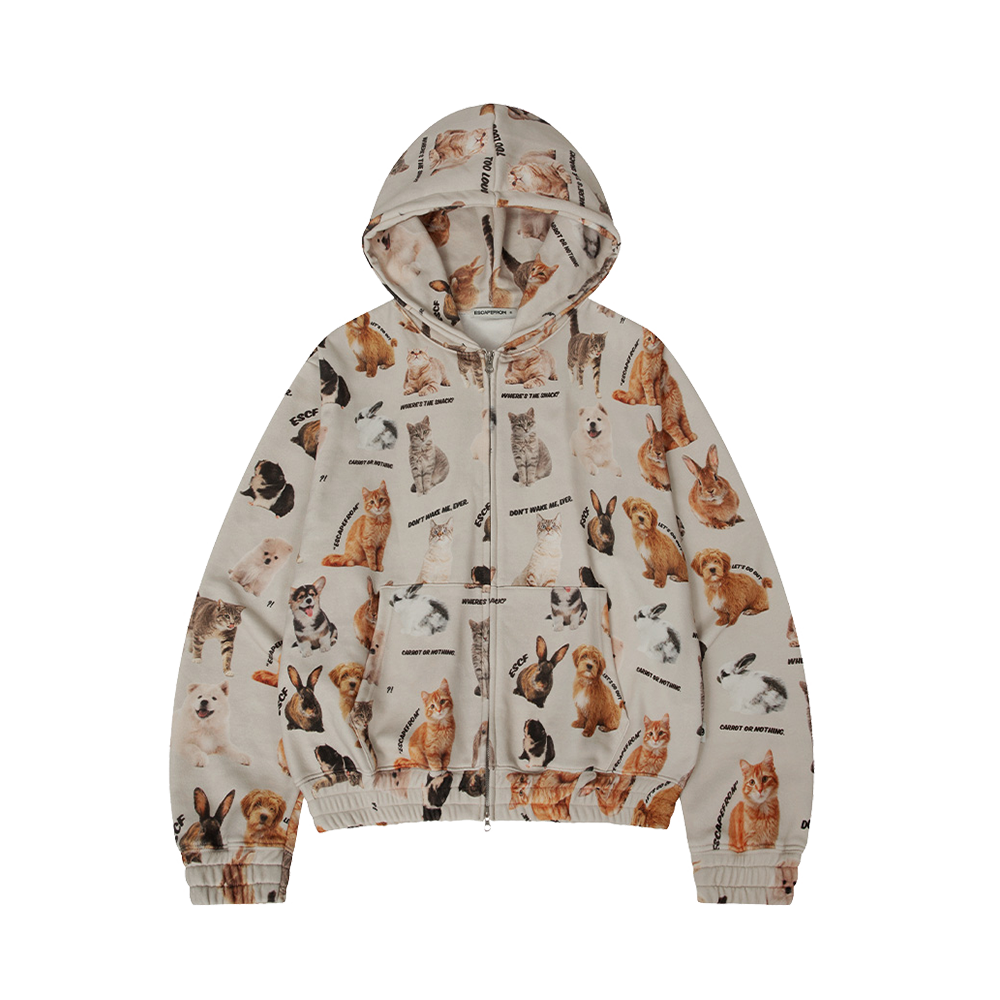 Escapefrom Animals Full Print Two-Way Hood Zip-Up Beige