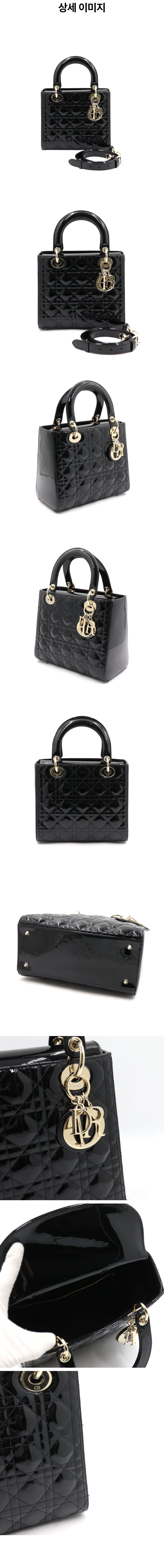 디올 M0565OWCB 블랙 페이던트 유광 레이디 디올 미디엄 까나쥬 토트백 겸 숄더백 aa47954
