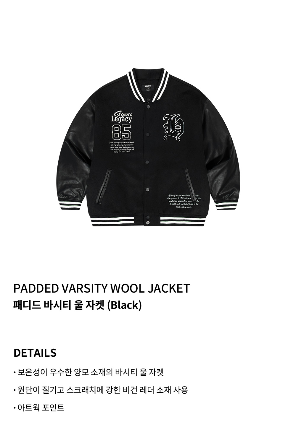 에이치덱스 패디드 바시티 울 자켓 블랙