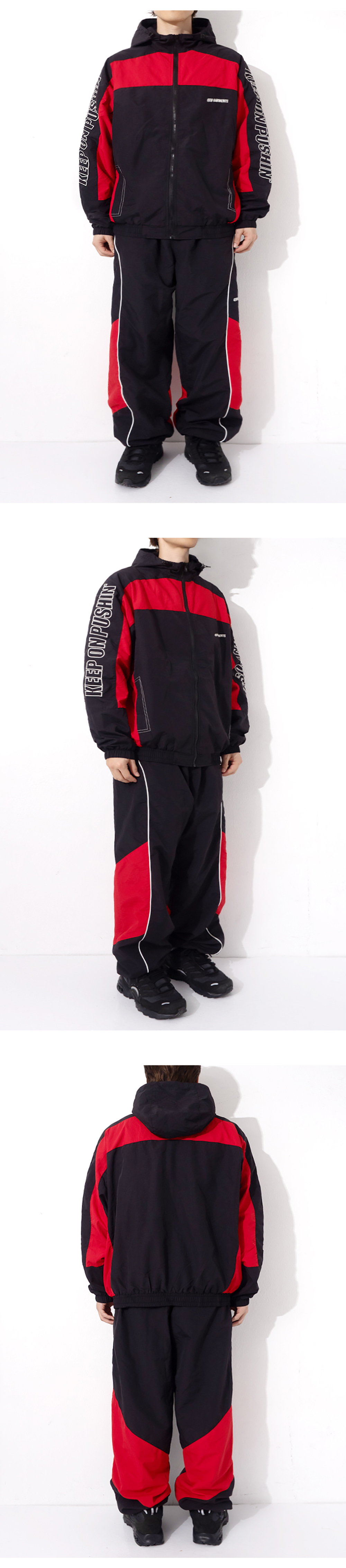 큐티에잇 가먼츠 레트로 트랙 셋업 블랙레드