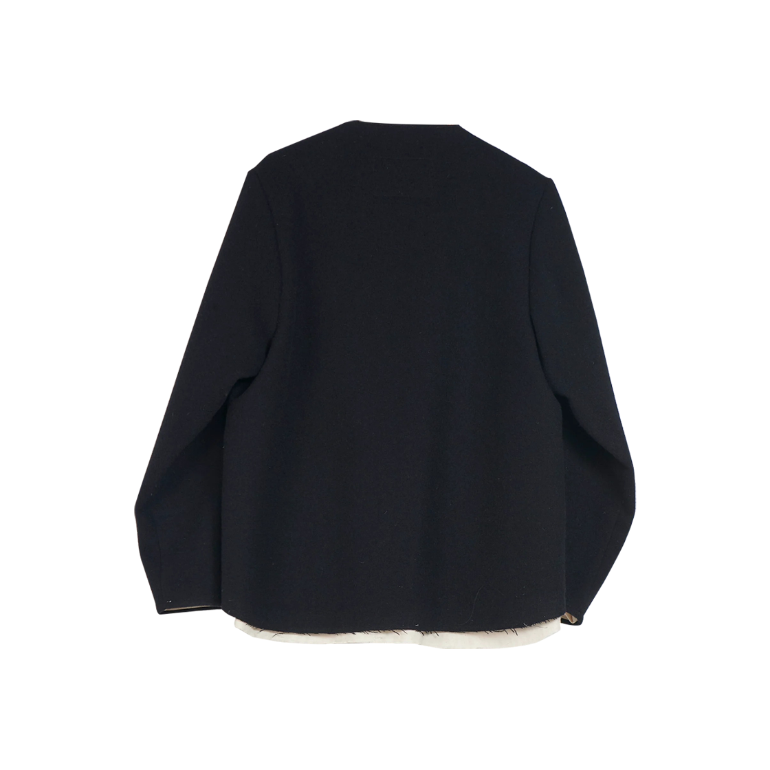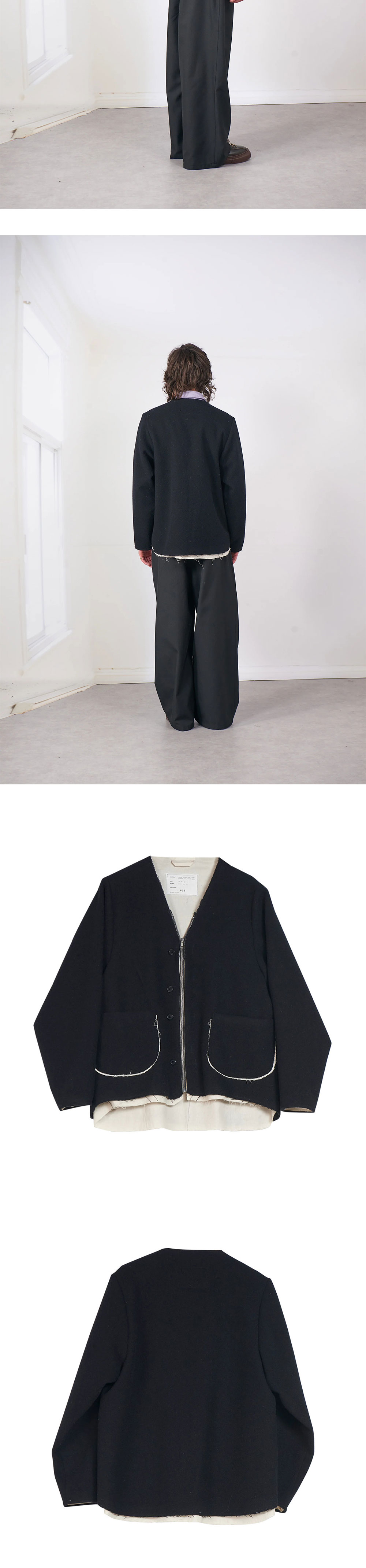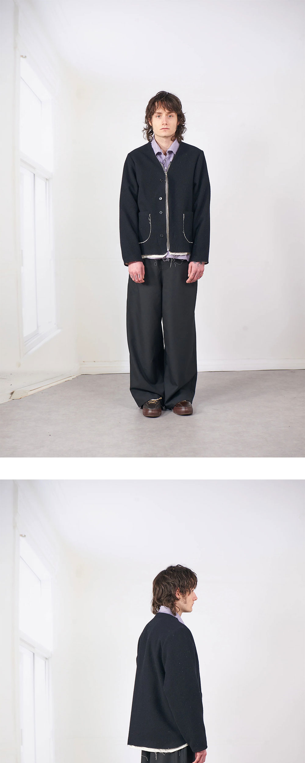 카미엘 포트젠스 카디 비 블랙입니다. - 브이넥 울 가디건 - 지퍼 및 버튼 클로저 - 로우 디테일 - 밑단 흰 안감 노출 - 패치 포켓