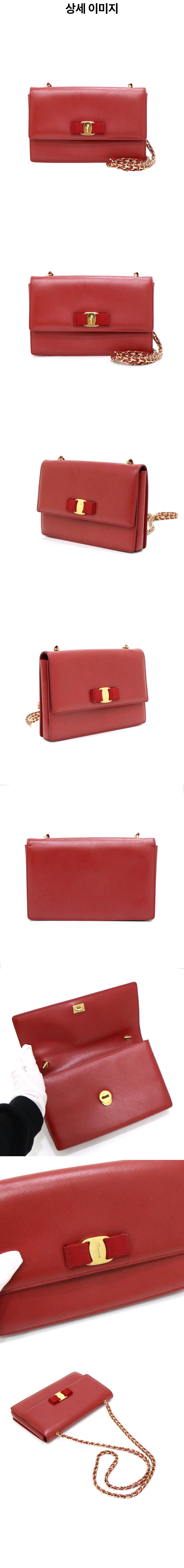 페라가모 21 E480 레드 바라로고 지니 금장체인 숄더백 겸 크로스백 aa50403
