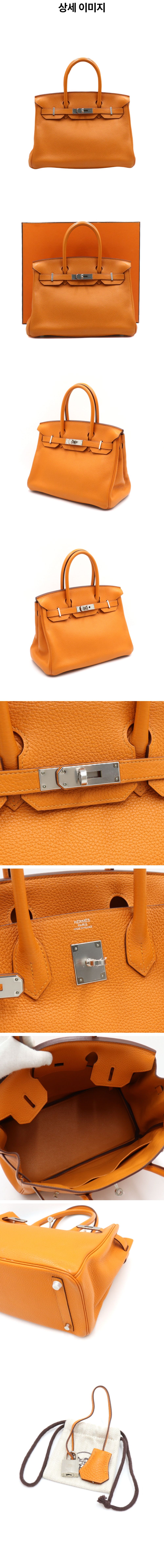 에르메스 토고 오렌지 은장하드웨어 벌킨30 여성 토트백 aa50343