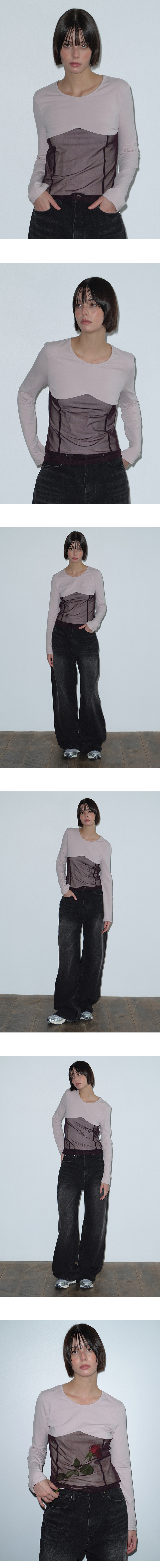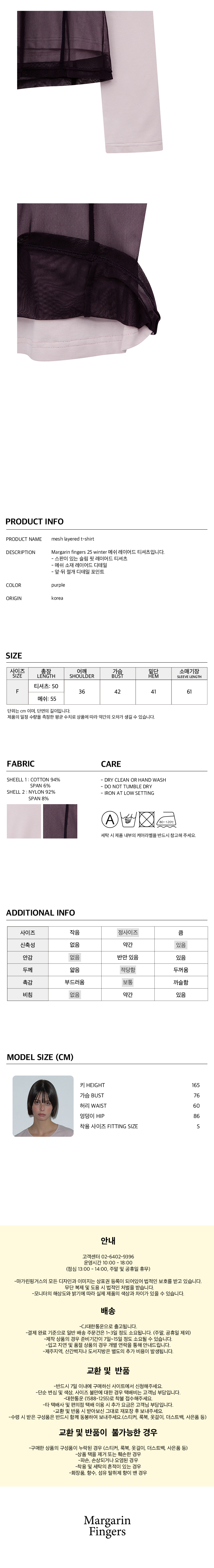 마가린핑거스 메쉬 레이어드 티셔츠 퍼플