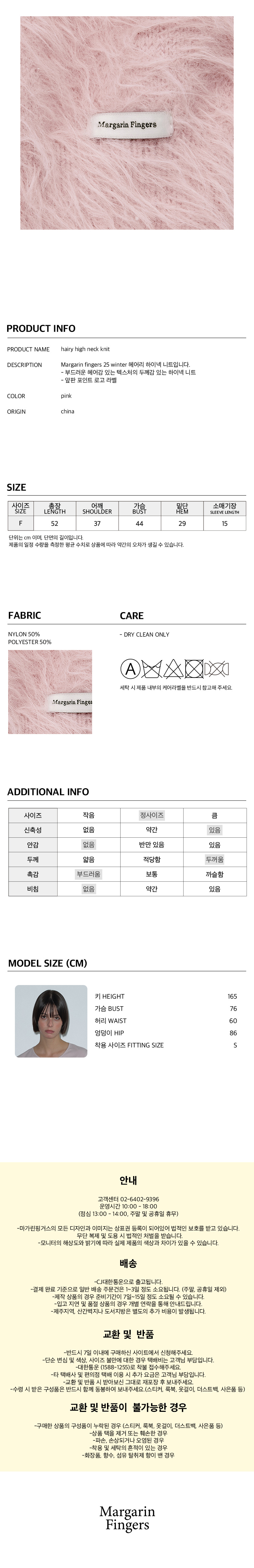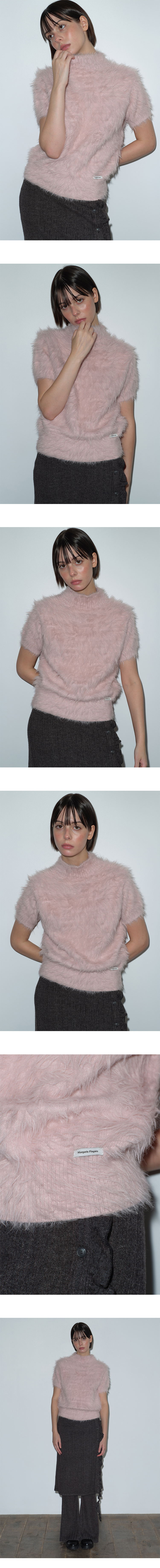 마가린핑거스 헤어리 하이 넥 니트 핑크