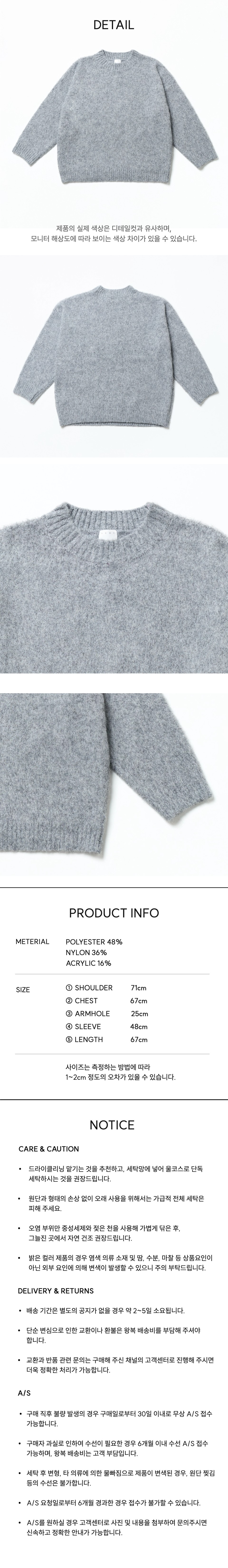 아코크 브러쉬드 블렌드 풀오버 그레이