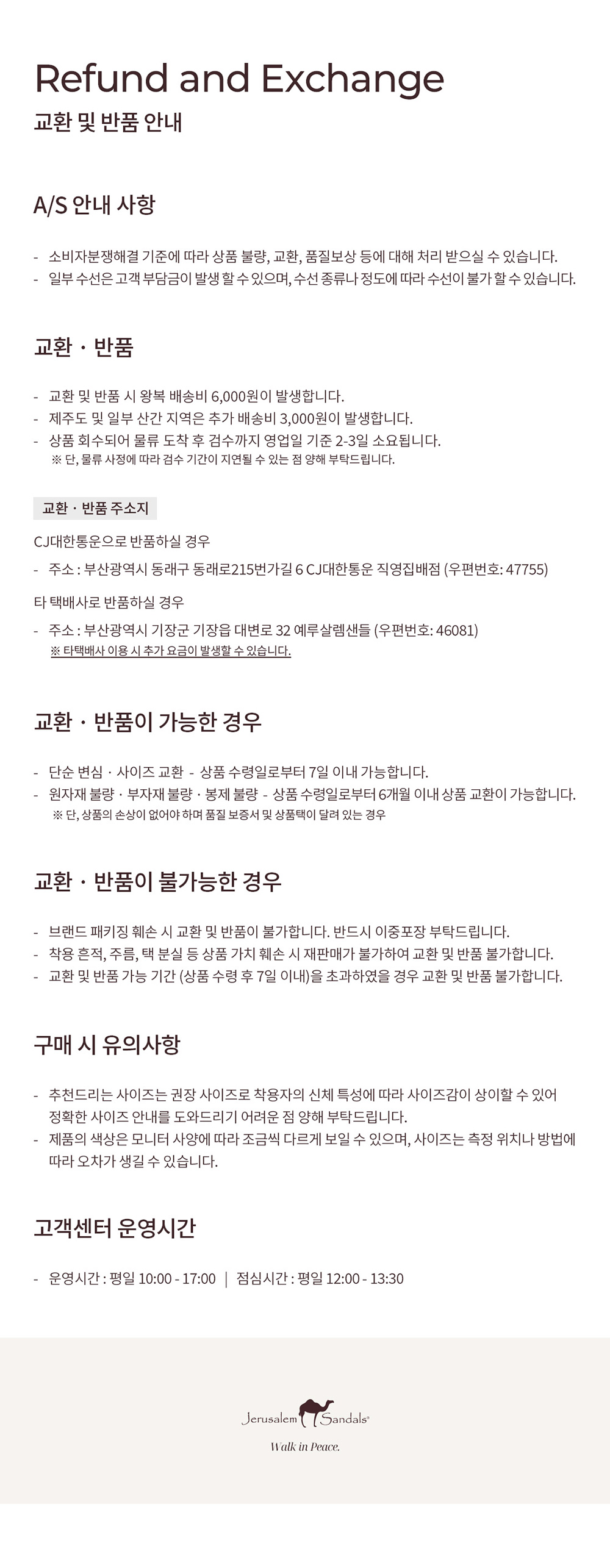 교환 및 반품 안내