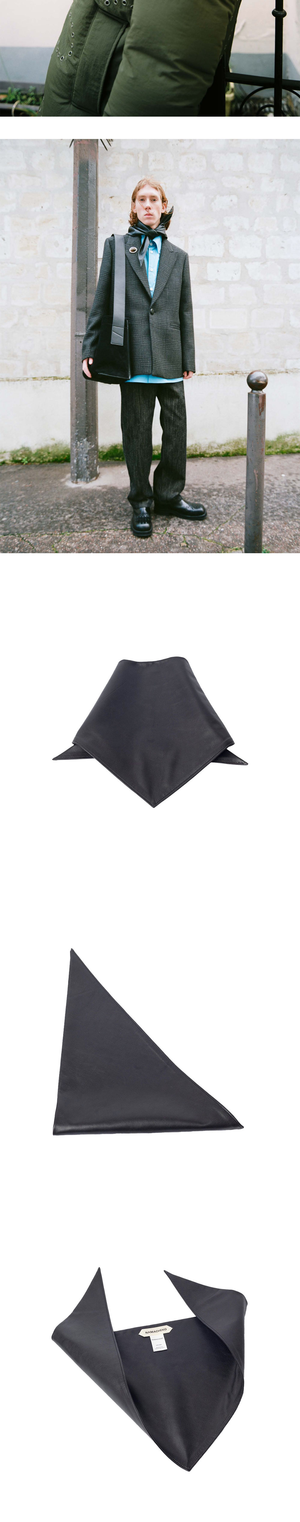 나마체코 우먼 네프스키 스카프 블랙 아스포르타빌레입니다. - 송아지 가죽 스카프 - 반다나 디자인 - 풍부하고 빈티지한 마감 - 투박한 매력과 세련된 스타일