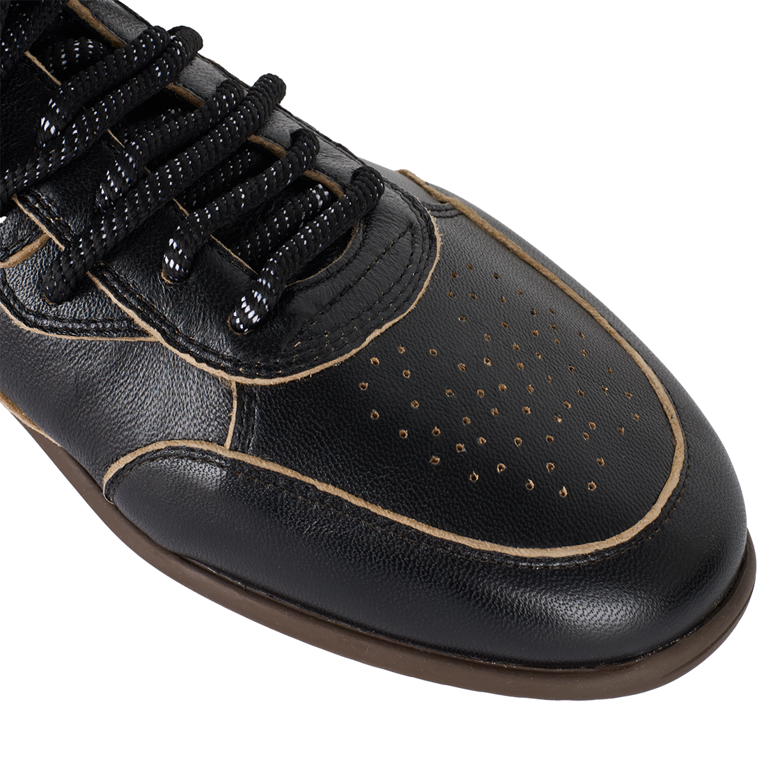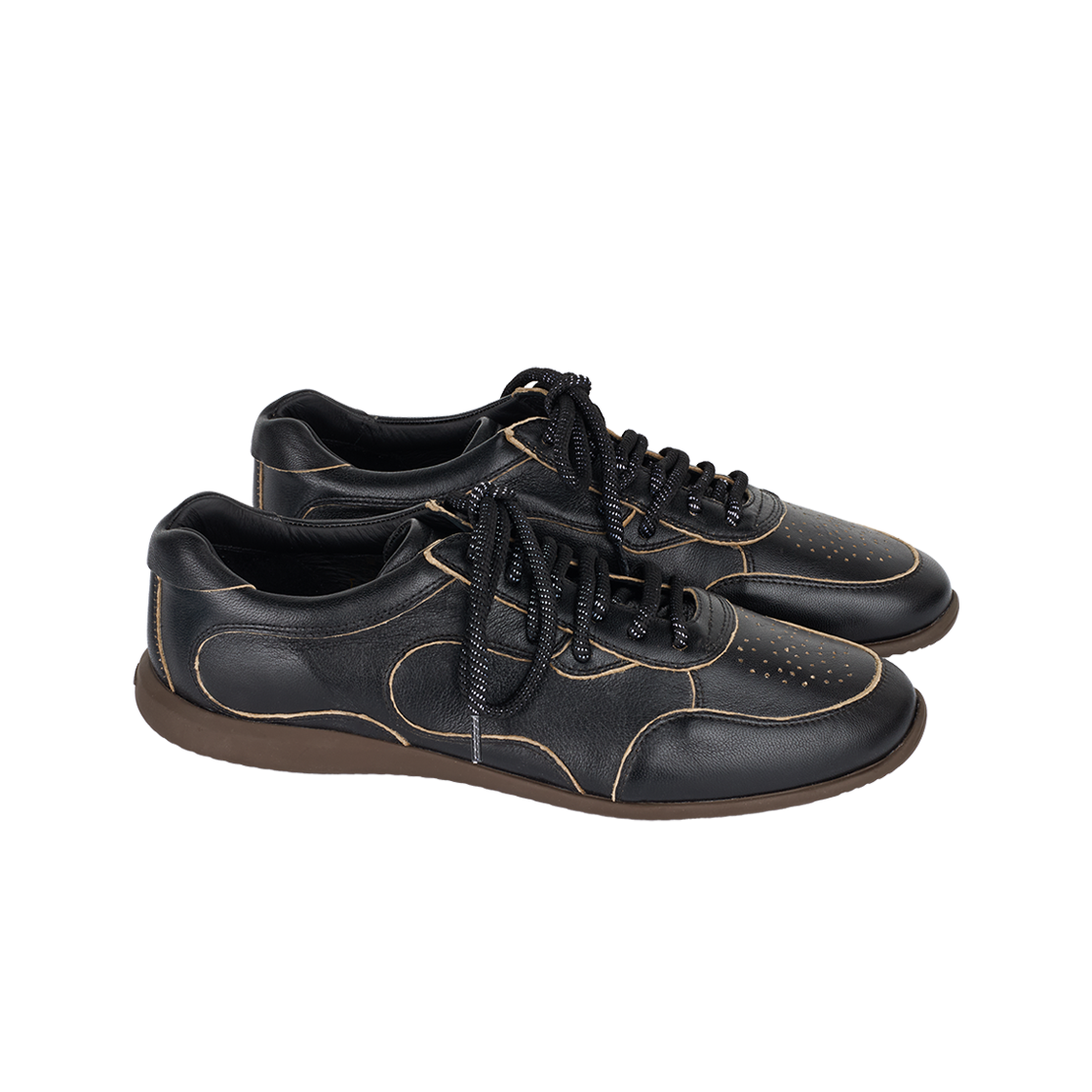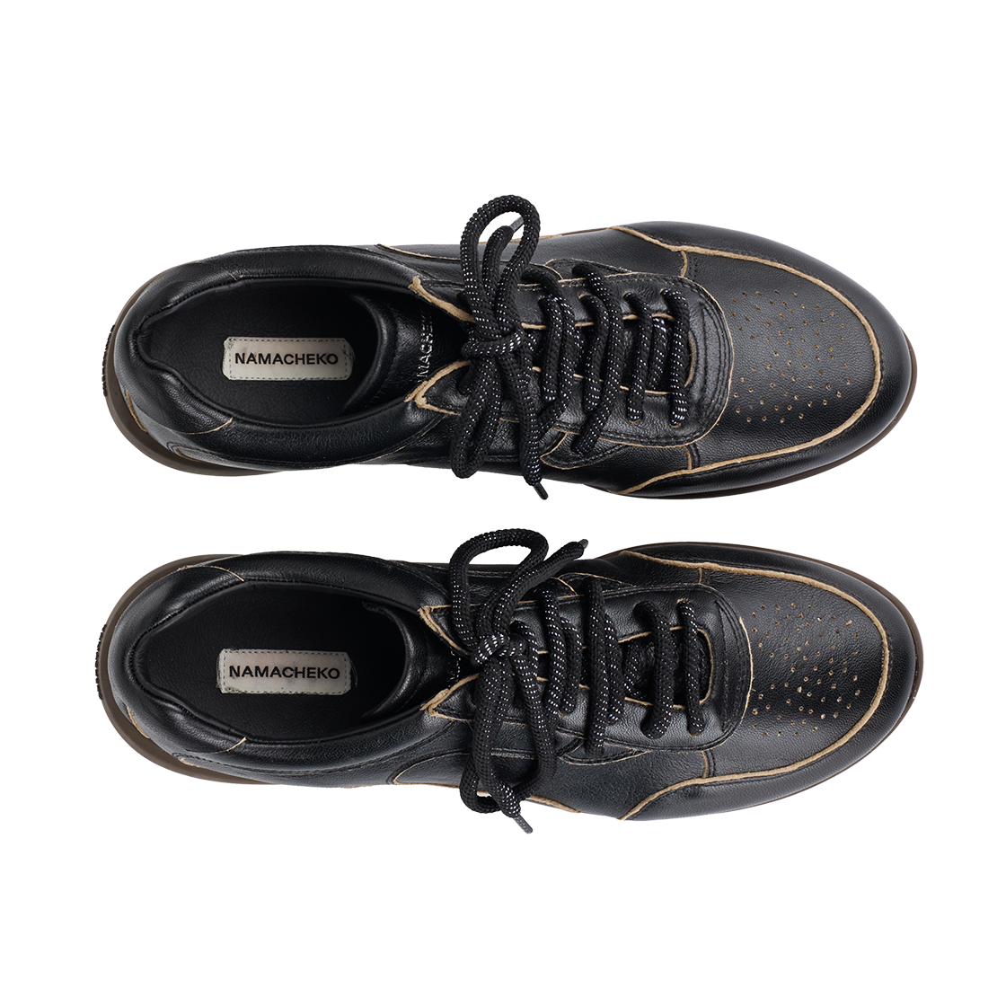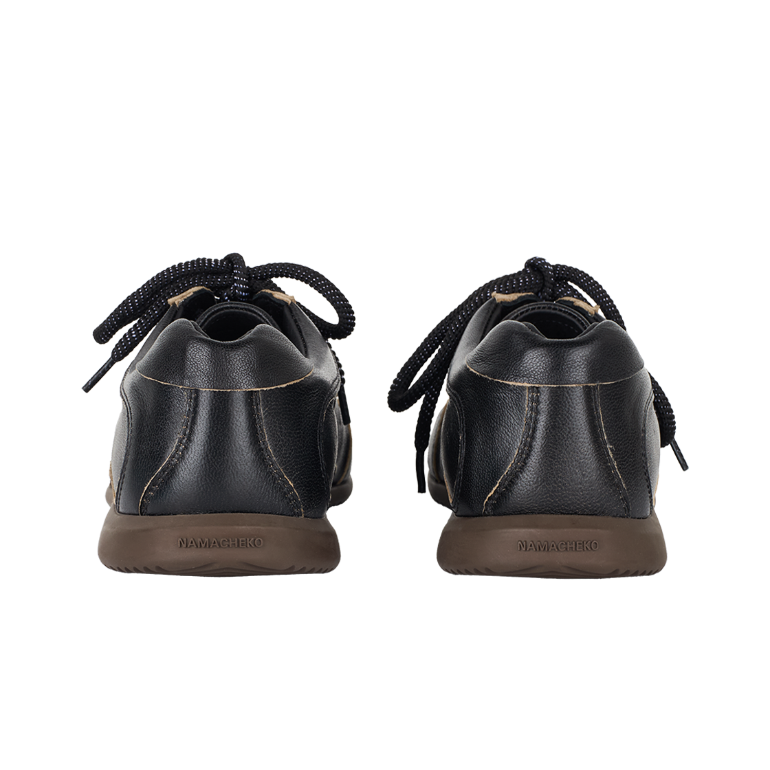 나마체코 오스터리 스니커 블랙 아스포르타빌레입니다. - 블랙 가죽 어퍼 - 테두리를 따라 노출된 베이지색 안감 - 토캡 부분의 작은 타공 디테일 - 곡선형의 유기적인 패널 디자인 - 뒤꿈치 부분에 새겨진 로고 - 브라운컬러의 플랫한 밑창