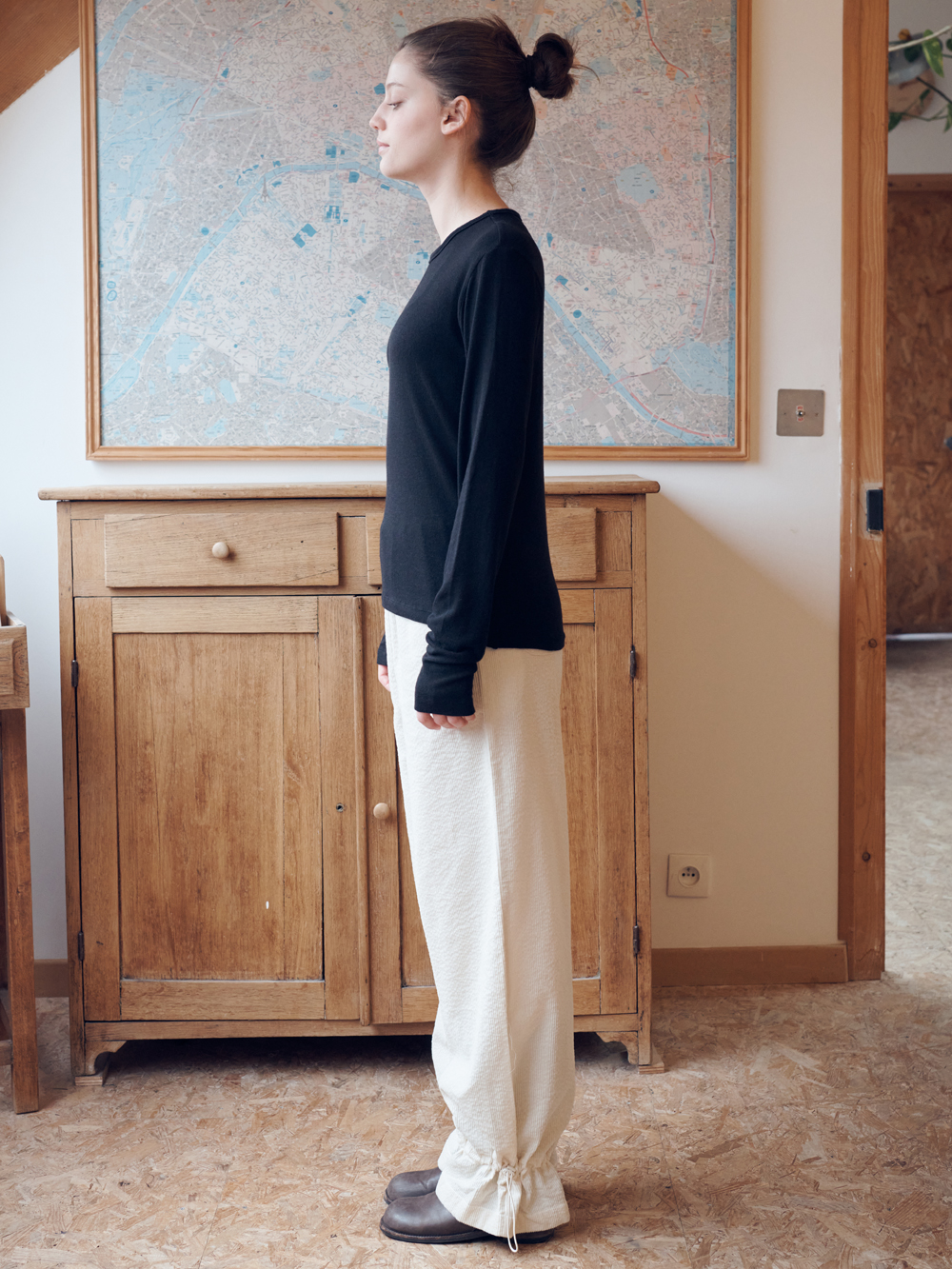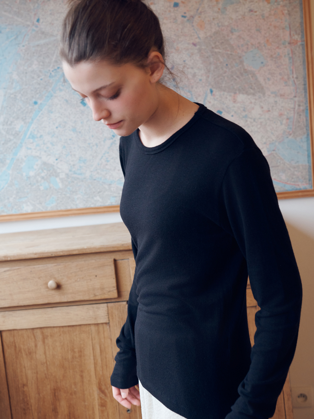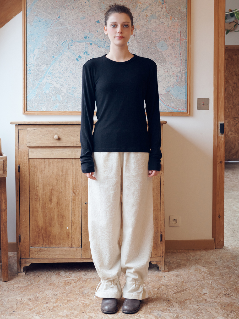 2025 FW COLLECTION - 릴렉스한 핏의 롱 슬리브 티셔츠 - wool,cotton,lycell의 천연소재 혼방의 부드러운 터치감 - 단품 혹은 레이어드로 활용가능한 아이템 - 제품 컬러는 상세페이지의 누끼이미지와 가장 유사합니다. - Made in korea +COLOR Off White, Black, Brown +CARE Dry cleaning only