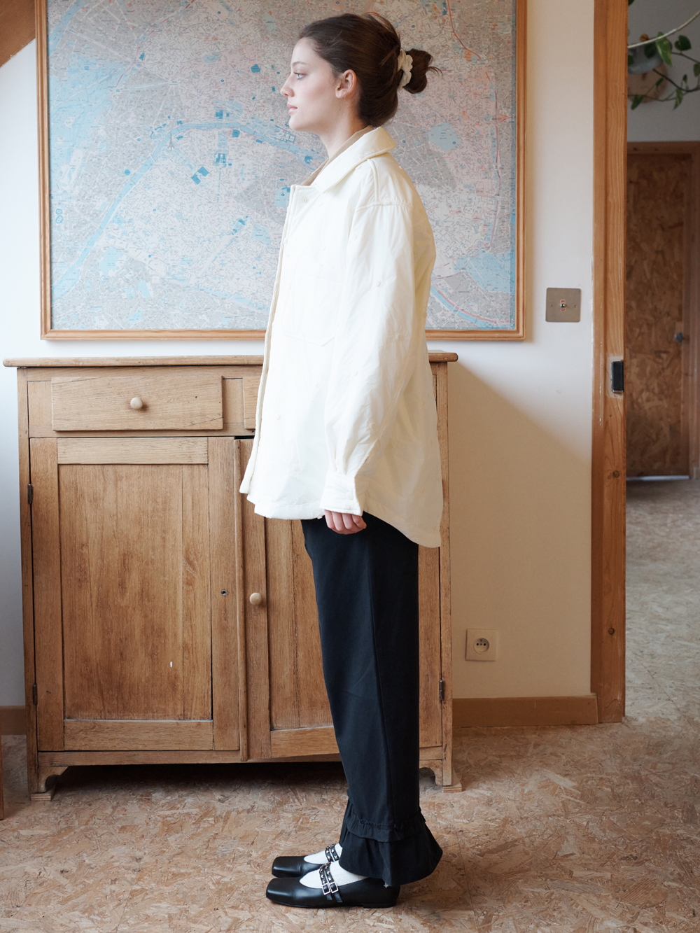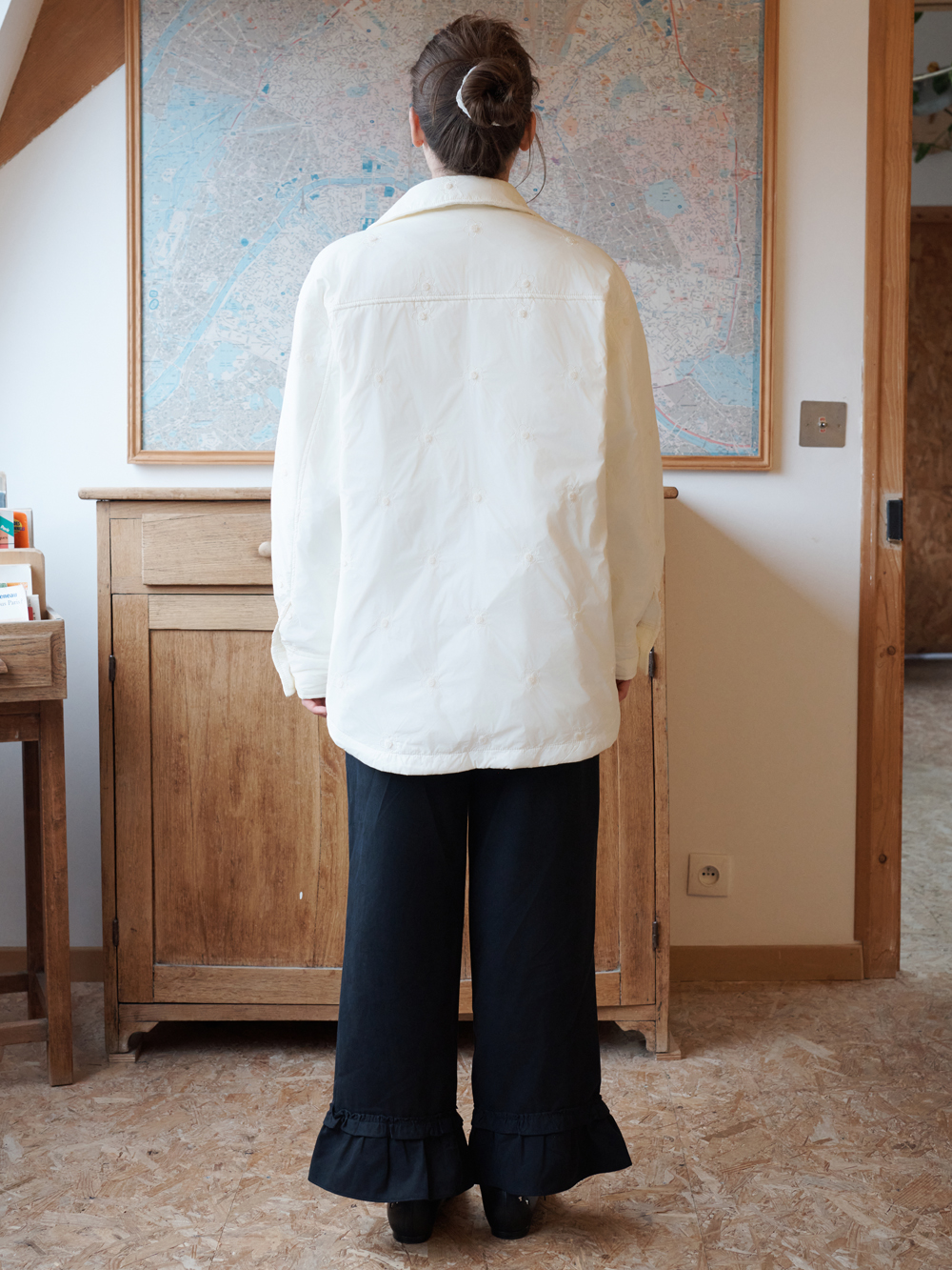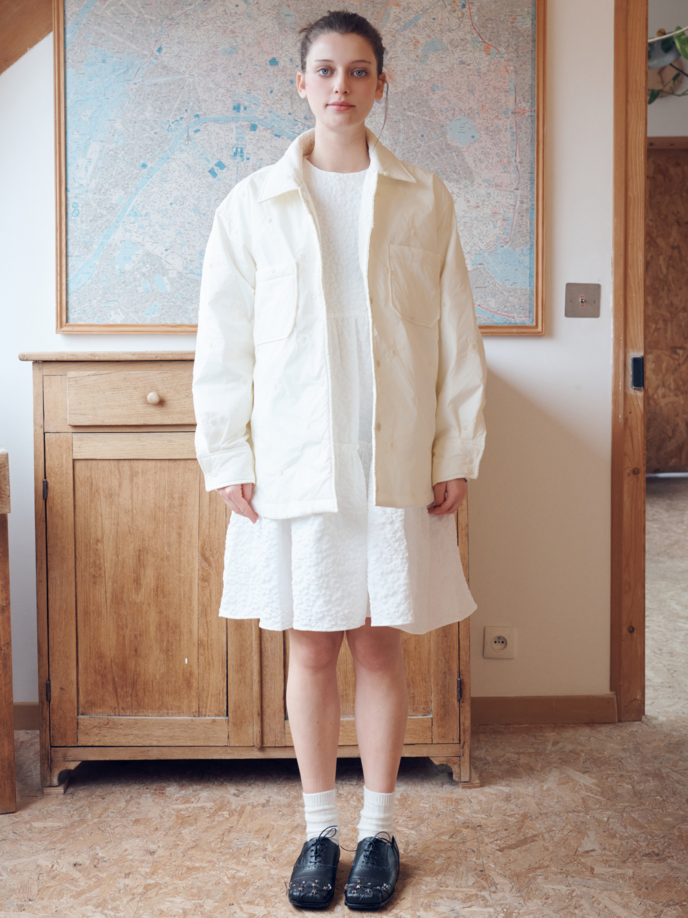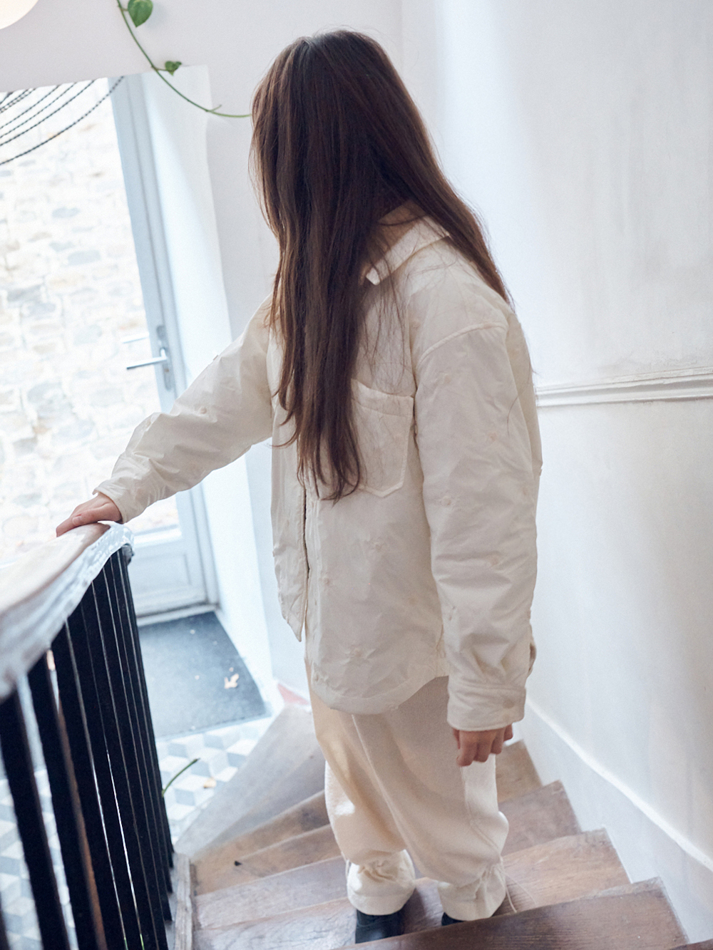 2025 FW COLLECTION - 플라워 모양의 자수로 포인트 되어진 원단 - 3온스의 솜 충전재가 포함된 보온성 - 전면, 소매부분의 스냅 디테일 - 가벼운 무게의 넉넉한 실루엣의 셔츠형태의 패디드 자켓 - 제품 컬러는 상세페이지의 누끼이미지와 가장 유사합니다. - Made in korea +COLOR Cream +CARE Dry cleaning only