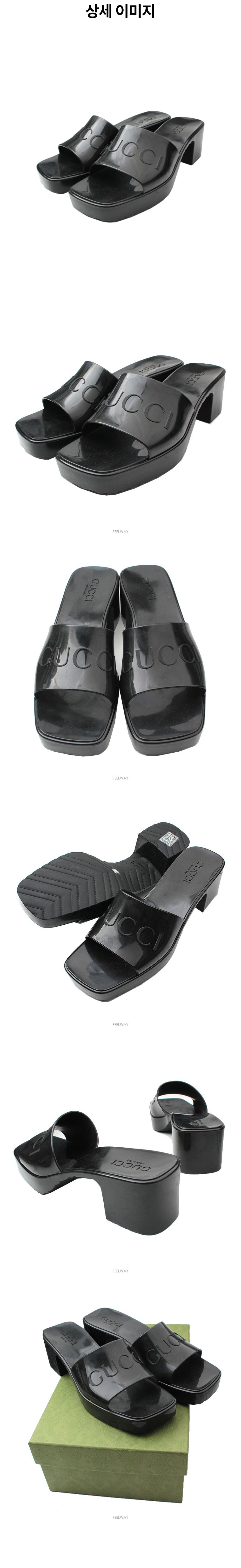 구찌 블랙 젤리 청키 힐 뮬 38 사이즈