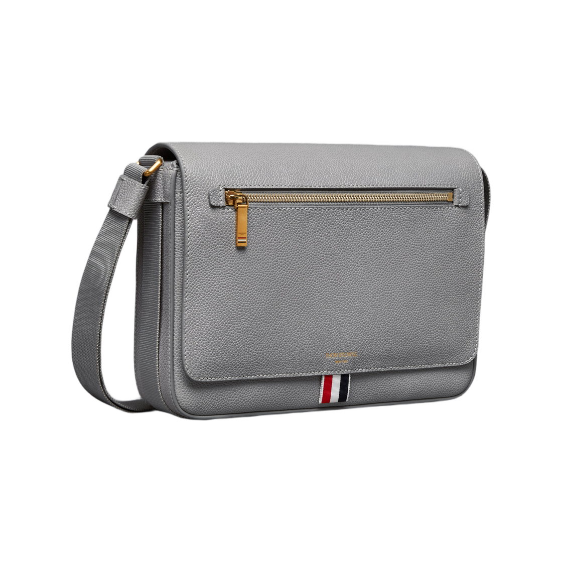 Thom Browne Pebble Grain Reporter Bag Light Grey