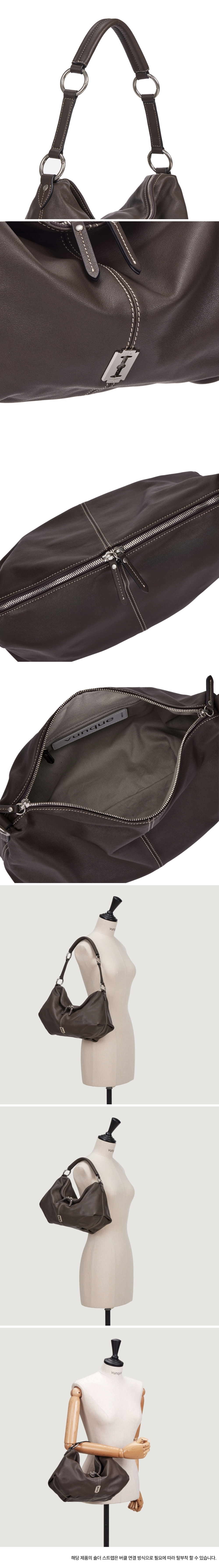 우아한 입체감을 표현하는 드레이핑 공정을 거친 NEW 가죽 숄더백스트랩 끈의 오링 개고리를 활용하여 다양한 연출 가능(토트/숏숄더/롱숄더)