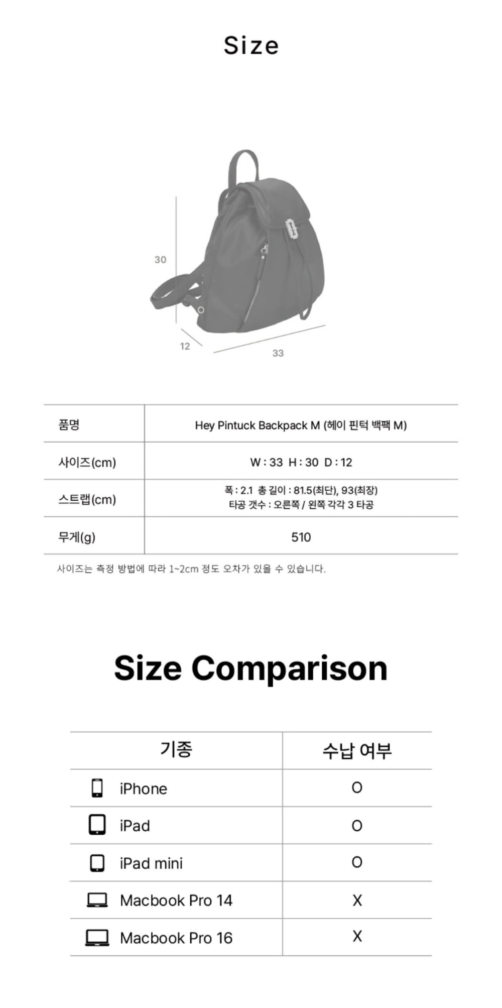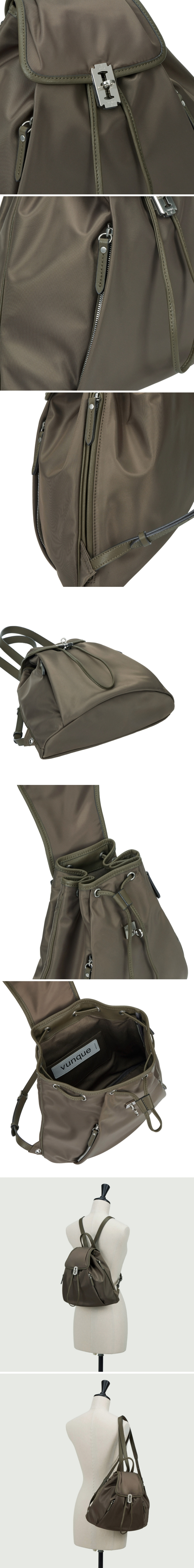 우아한 입체감을 표현하는 드레이핑 공정을 거친 NEW 원단 백팩일반 백팩보다 여성스럽고 슬림한 무드로 디자인스트랩 하단 날개부분 링 장식에 참 스타일링 가능
