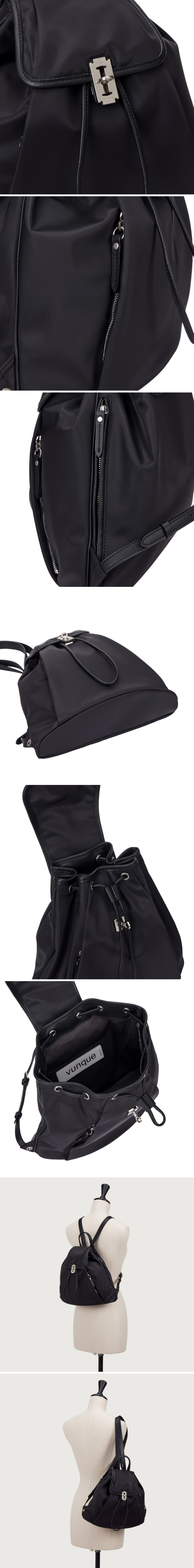 우아한 입체감을 표현하는 드레이핑 공정을 거친 NEW 원단 백팩일반 백팩보다 여성스럽고 슬림한 무드로 디자인스트랩 하단 날개부분 링 장식에 참 스타일링 가능