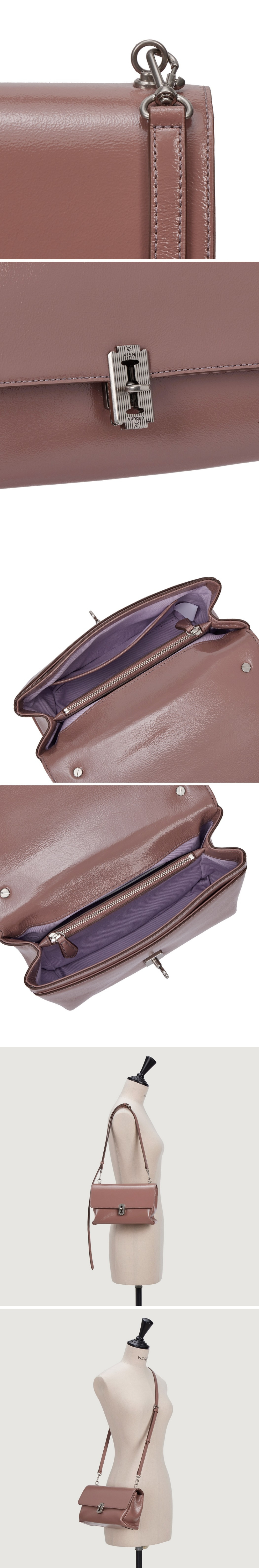 빈티지한 무드의 앤틱 면도칼 장식을 첫 선보이는 라인으로 장식과 어울어지는 클래식하면서도 데일리한 플랩 숄더 백.다양한 연출이 가능한 실용적인 Item.※ 구매 시, 유의 사항 ※옆면이 안으로 휘어져 있어 주름처럼 보이는 것은 정상 상품이므로, 교환 및 반품의 사유가 되지 않습니다.