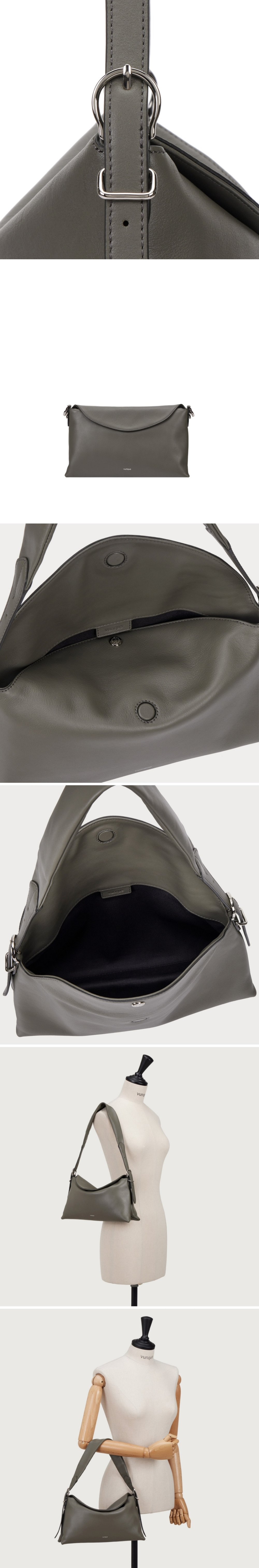 시즌 테마 'Tanz Theater' 무드를 살려서, 자연스럽게 쳐지는 곡선 실루엣을 적용한 숄더백은은한 광택감의 민자 가죽을 사용하여 곡선이 돋보이는 디자인
