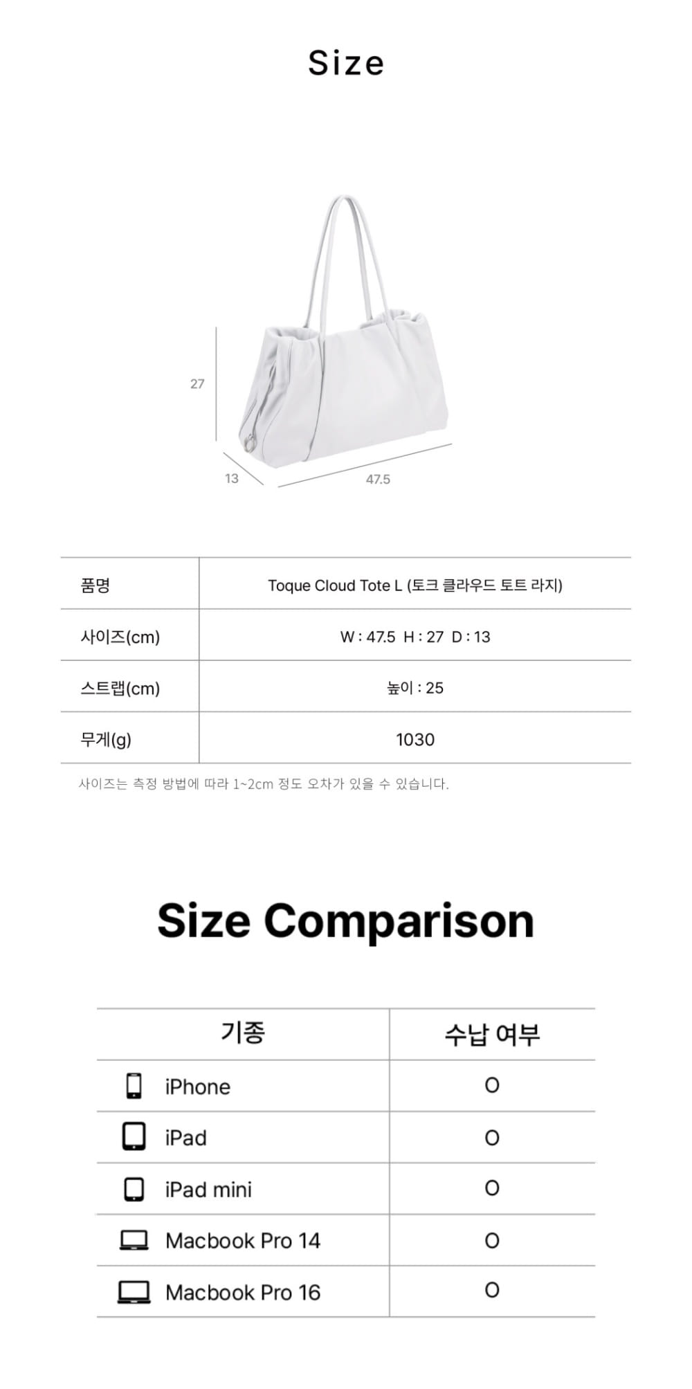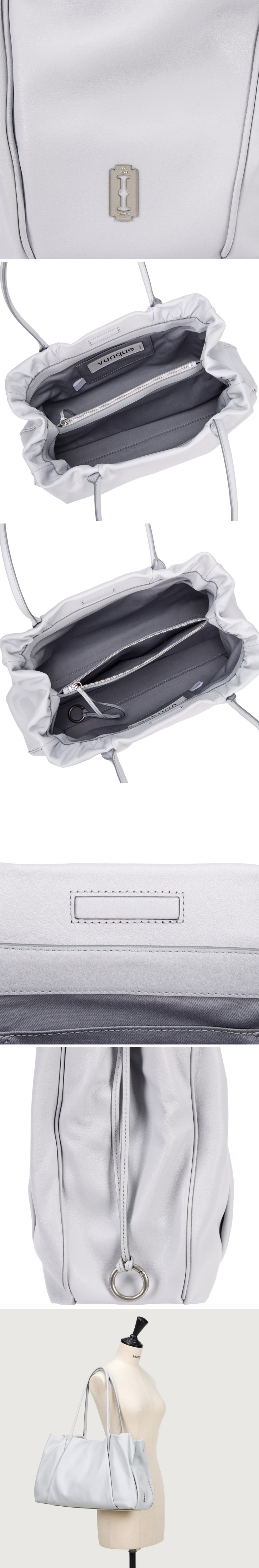 내츄럴한 가죽을 사용하여 전체적인 쉐입에 주름을 넣어 여성스러운 디테일이 멋스러운 토트백넉넉한 사이즈로 수납력이 좋고, 중앙 지퍼 수납 방식으로 공간이 3개로 분리되어 있어 필요에 맞게 수납지퍼플러 스트링 끈에 연결된 O링 장식에 참 스타일링 가능
