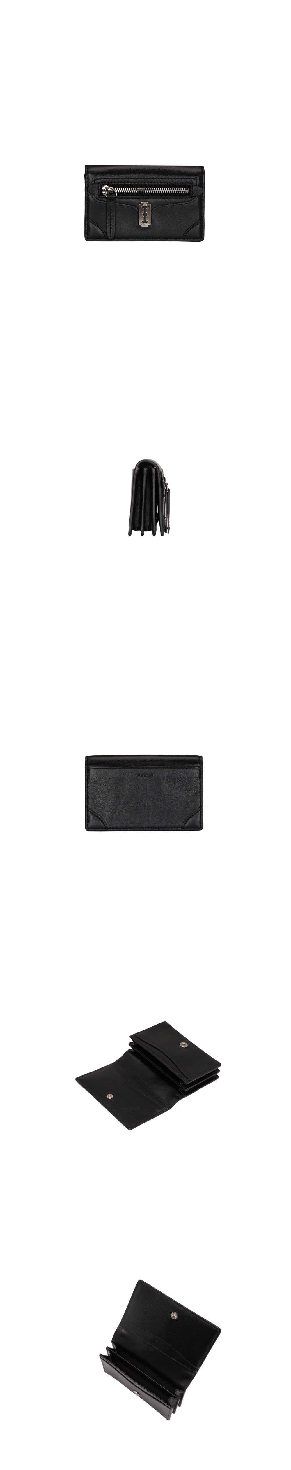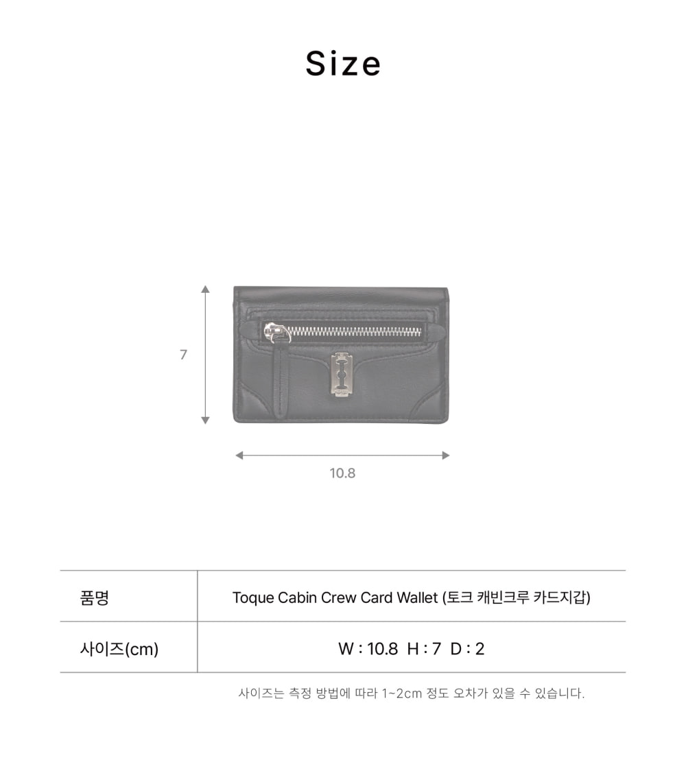 라인감이 돋보이는 토크 캐빈 크루 라인의 카드 지갑.한 손에 들어오는 콤팩트한 사이즈에 비해 정면 창틀 지퍼를 포함해 아코디언 디자인으로 넉넉한 수납이 가능. 가죽표면의 주름은 천연가죽의 자연스러운 현상이오니 불량이 아님을 알려드립니다.