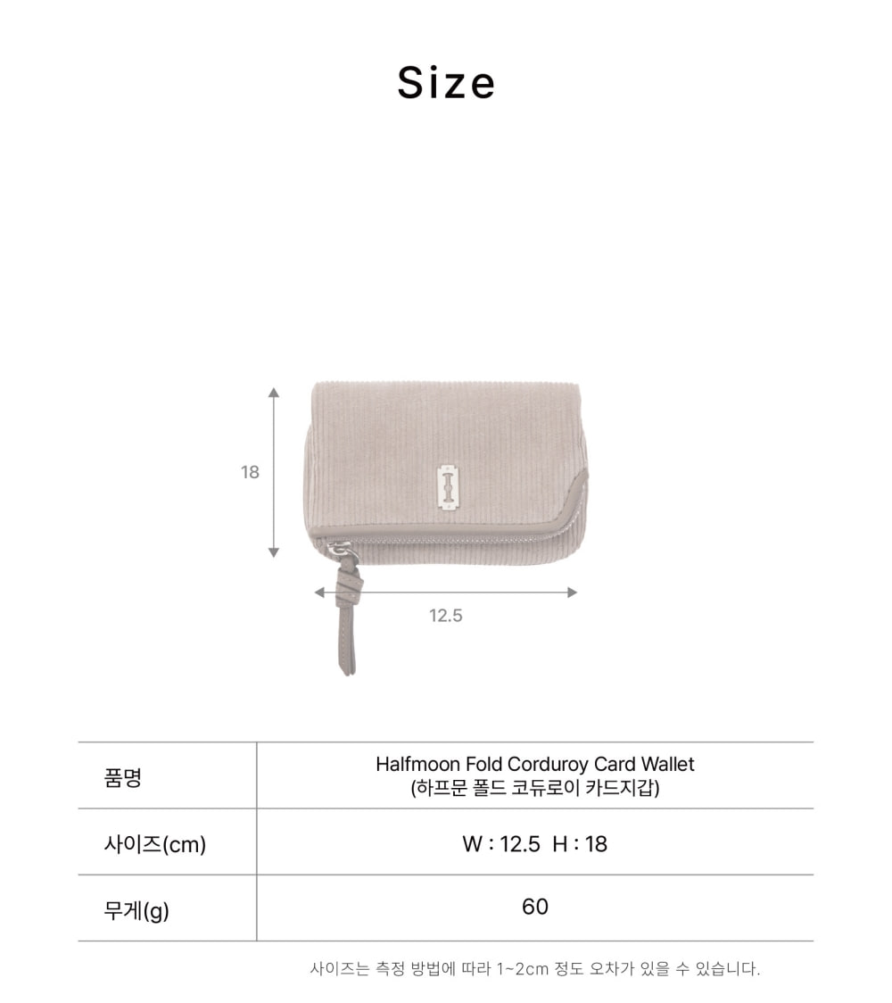 통수납이 가능한 원판 상단을 접어서 사용 가능한 카드지갑코듀로이에 은은한 민자가죽을 콤비하여 클래식한 무드를 표현지퍼 통수납칸 1 / 카드칸 2 (외부) ※이염주의 안내 소재 특성상 수분 또는 마찰에 의한 이염이 발생할 수 있으니, 착용 시 주의하여 주시기 바랍니다.