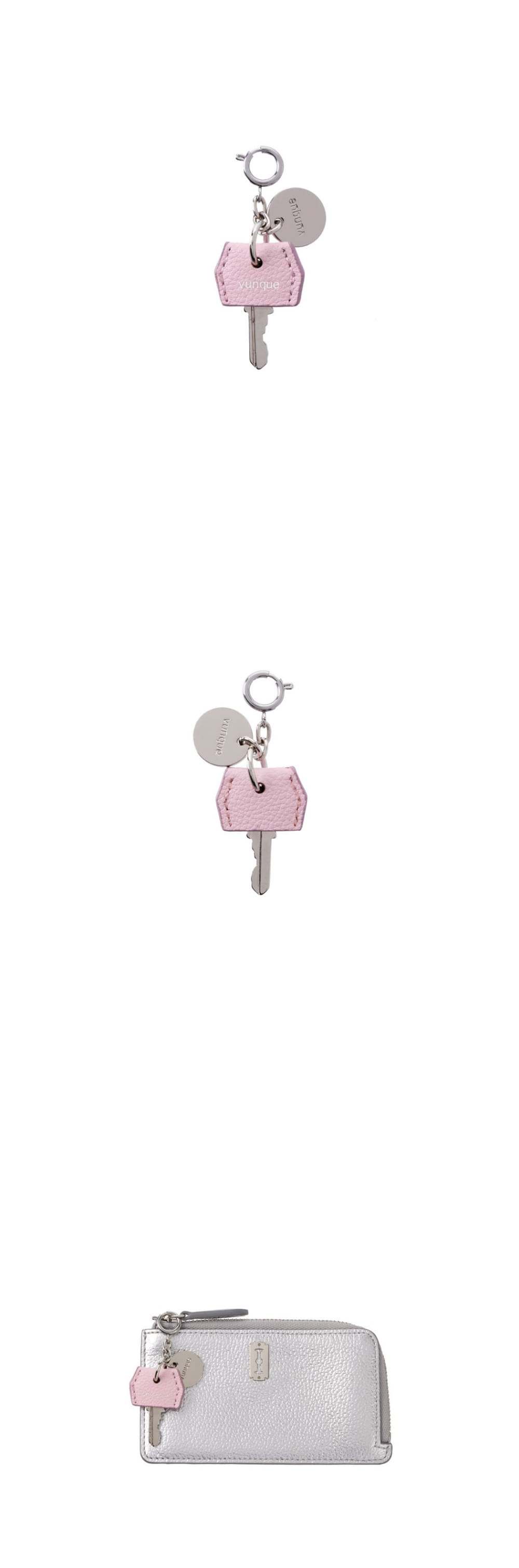 열쇠 상단을 레더로 커버한 피콜로 사이즈의 키 참지갑용 참으로 체인지갑 및 지퍼 플러에 달아 포인트로 연출 가능