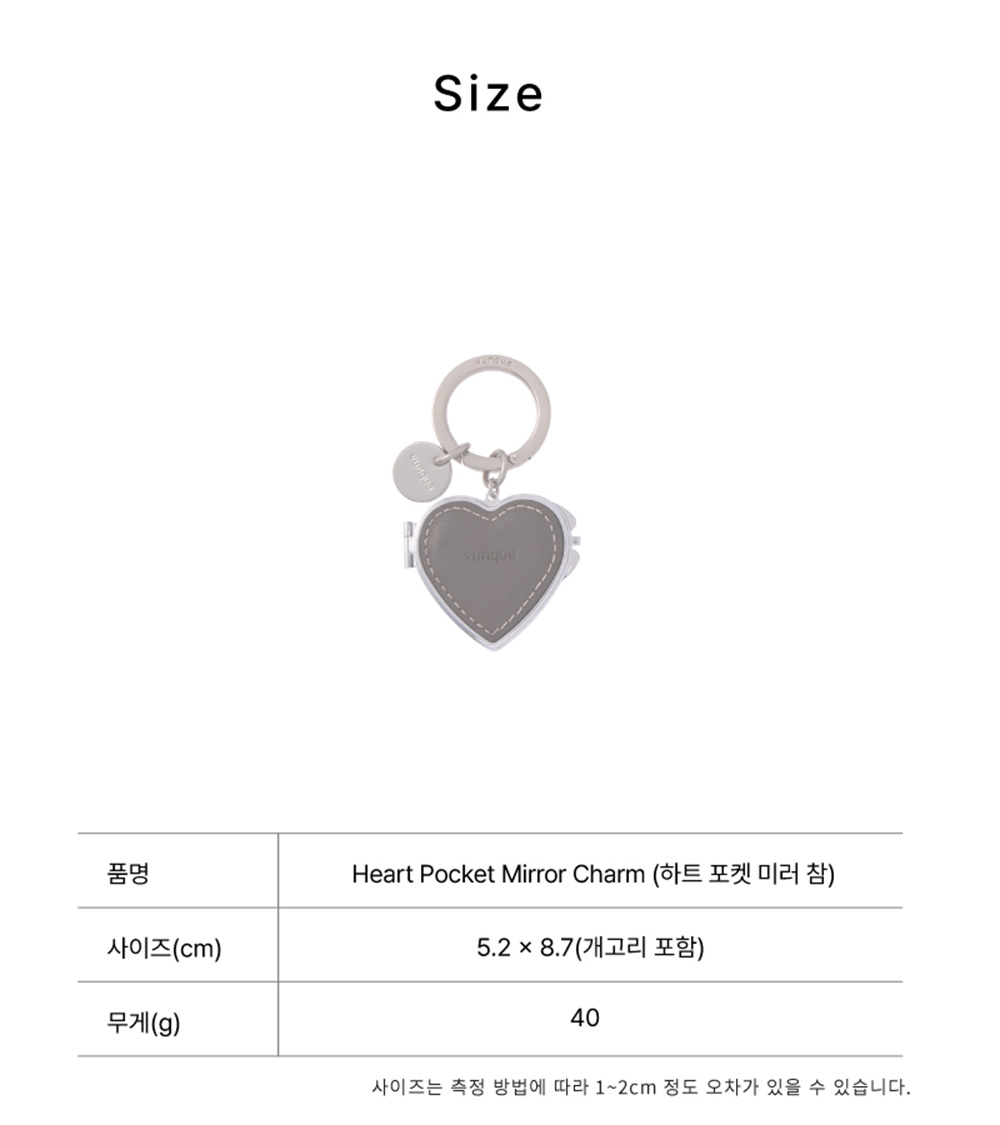 하트 형태의 레더 포인트 거울 참가방에 참 장식으로 연출시 귀여운 포인트를 줄 수 있음참을 열면 거울이 있어 실용성도 갖춤