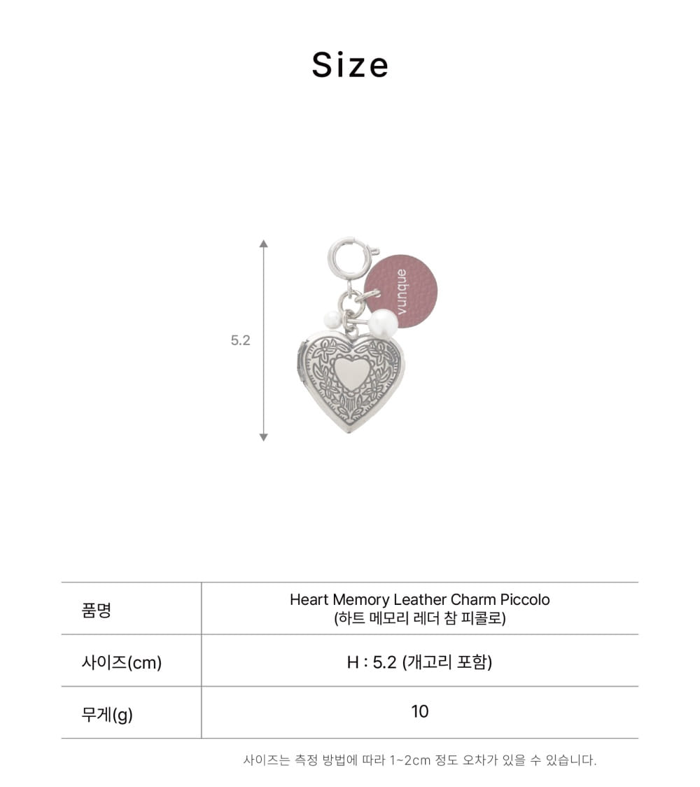 사진을 보관할 수 있는 빈티지한 느낌의 하트 오브제와 펄 장식이 특징지갑용 참으로 체인지갑 및 지퍼 플러에 달아 포인트로 연출 가능