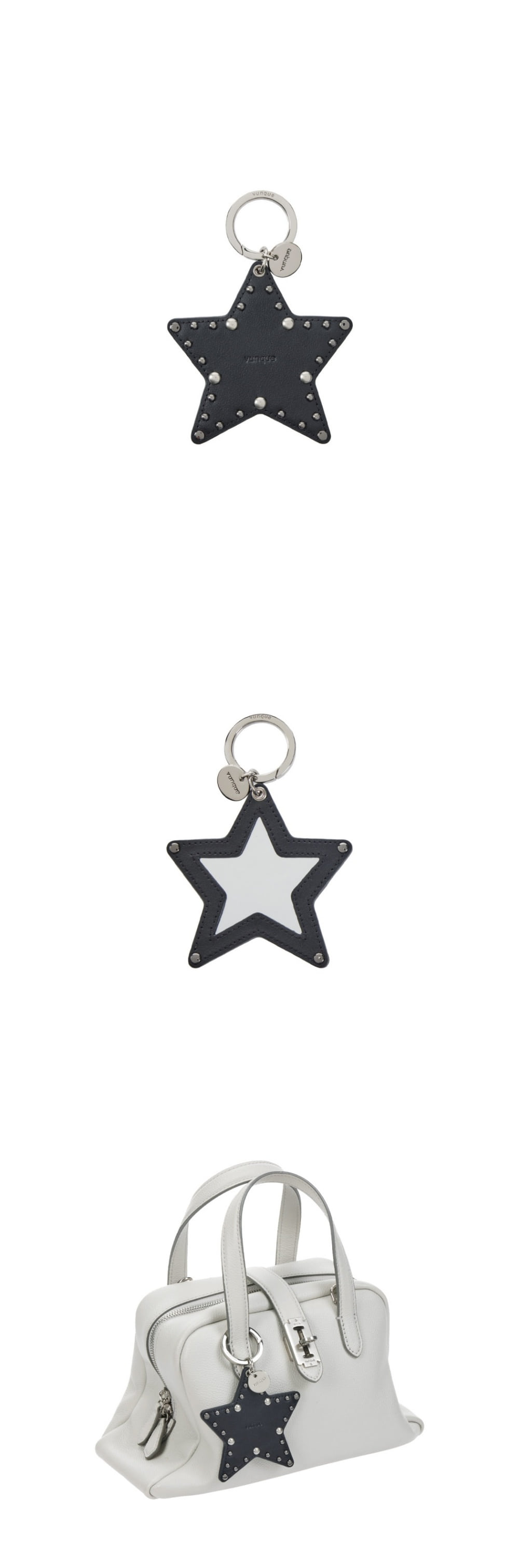 반짝이는 별을 형상화한 모양의 거울에 스터드 장식 디테일을 넣어 시크한 무드를 표현한 참