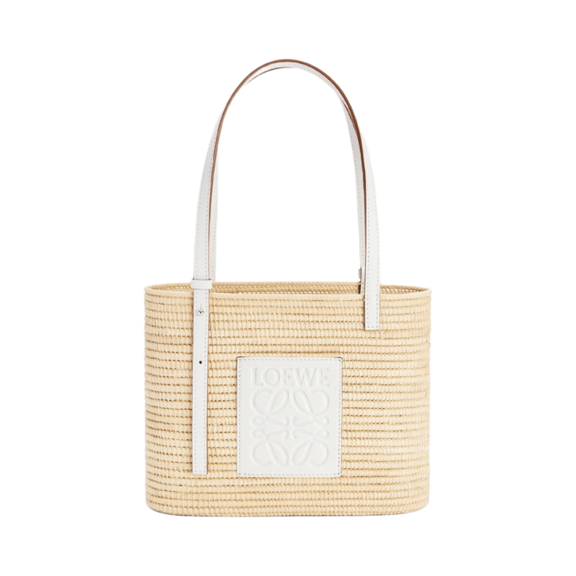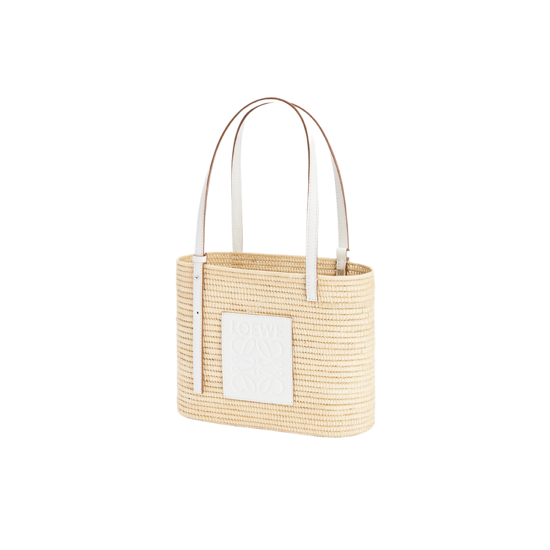 로에베 스몰 스퀘어 베스킷백 라피아 앤 카프스킨 내츄럴 화이트