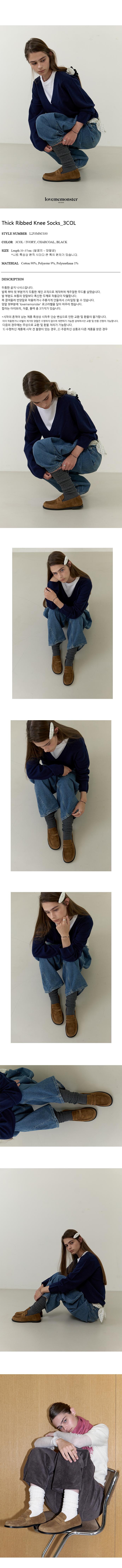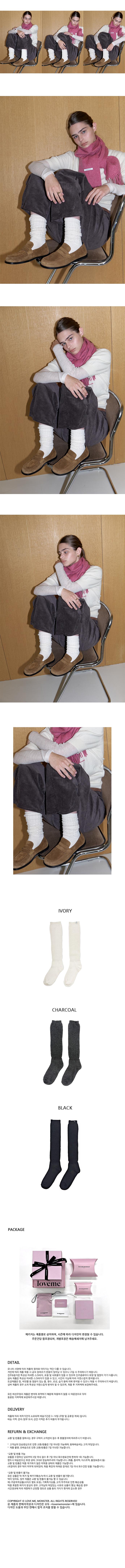 두툼한 골지 니삭스입니다. 발목 부터 윗 부분까지 두툼한 체인 조직으로 제직하여 캐주얼한 무드를 살렸습니다. 발 부분도 보통의 양말보다 폭신한 두께로 착용감이 탁월합니다. 쭉 끌어올려 반양말로 착용하거나 주름지게 만들어서 스타일링 할 수 있습니다. 양말 윗부분에 'lovememonster' 로고라벨을 달아 마무리 했습니다. 컬러는 아이보리, 챠콜, 블랙 총 3가지가 있습니다. *시착의 흔적이 남는 제품 특성상 시착후 단순 변심으로 인한 교환 및 환불이 불가합니다. 이미 착용했거나 라벨이 제거된 양말은 수령하지 않으며 재판매가 가능한 상태에서만 교환 및 반품 진행이 가능합니다. 다음의 경우에는 무상으로 교환 및 환불 처리가 가능합니다. 1) 수령하신 제품에 시착 전 불량이 있는 경우, 2) 주문하신 상품과 다른 제품을 받은 경우